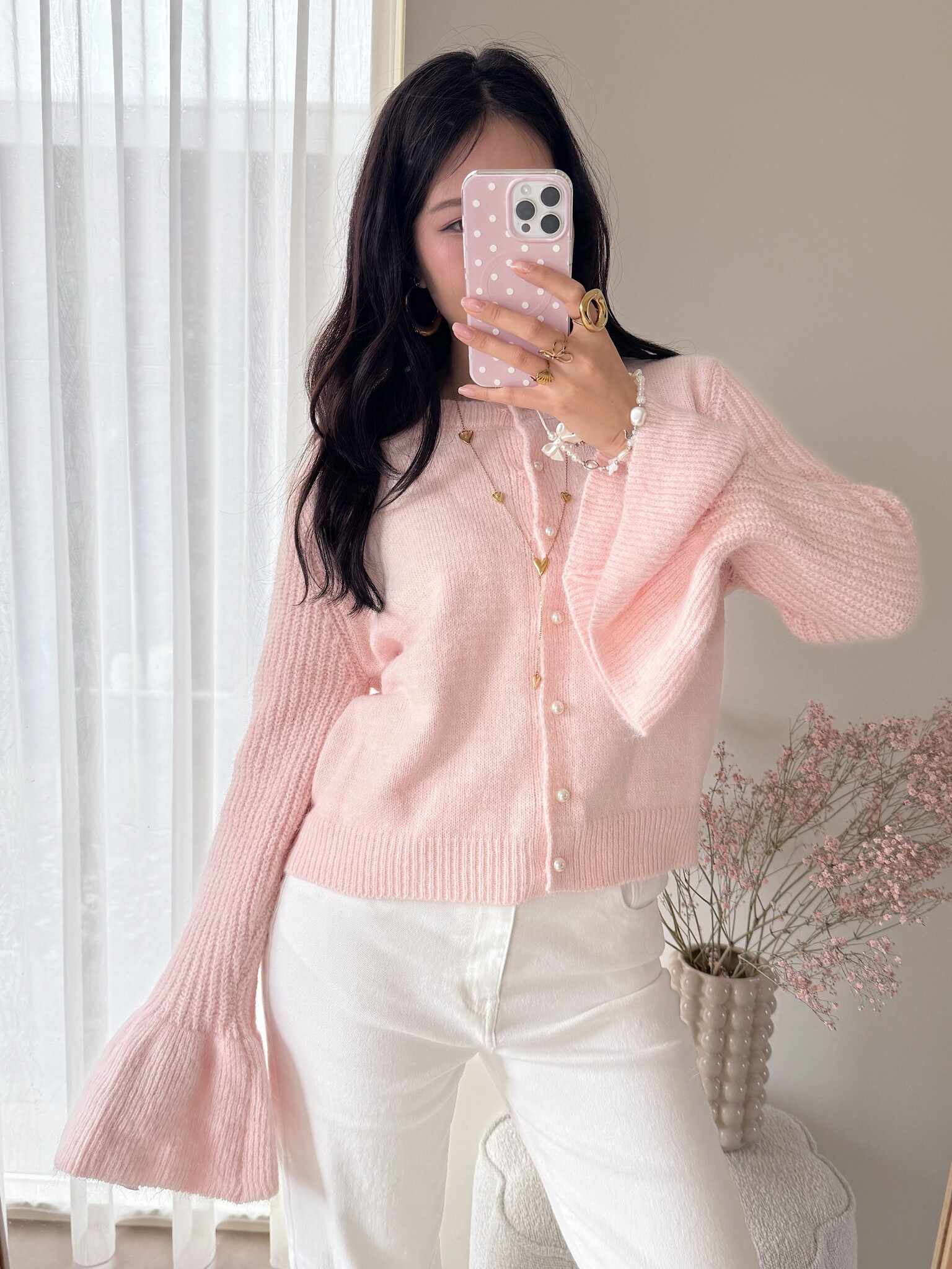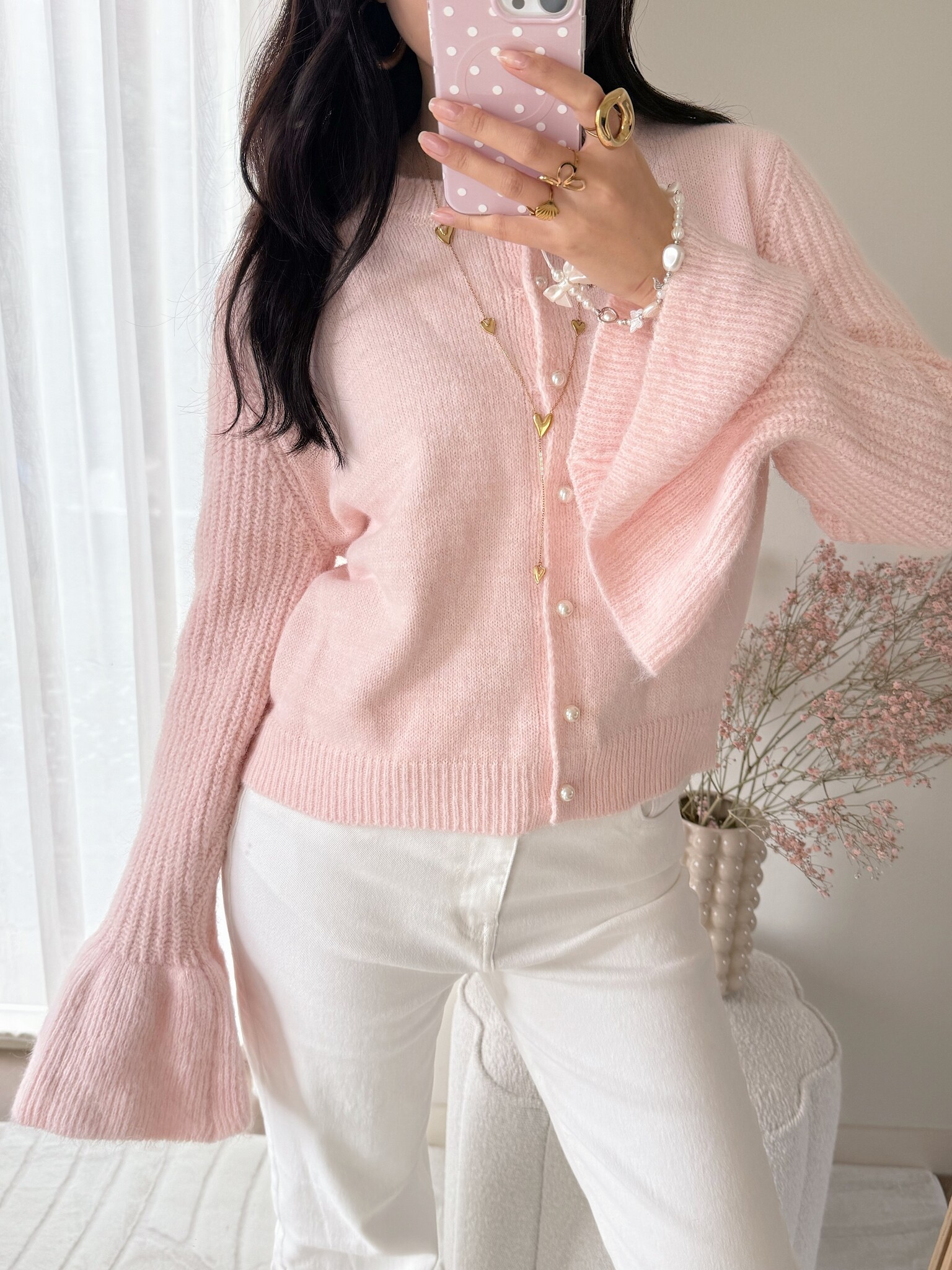 Cozy up in our Alaia Bell Sleeve Knit Cardigan! Also available in cream.