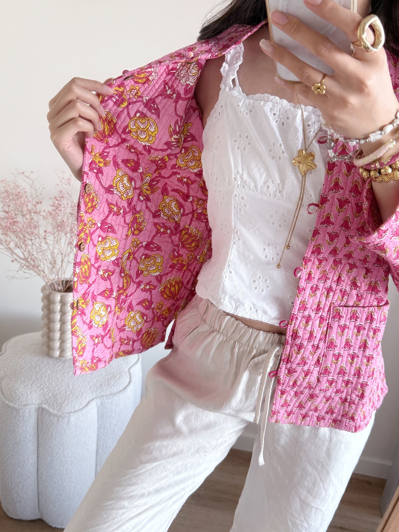 This Anika Flower Boho Jacket is giving us the ultimate spring/summer vibes! This cute jacket features a pretty flower print and classy straight fit. Perfect to pair with a blouse or dress!