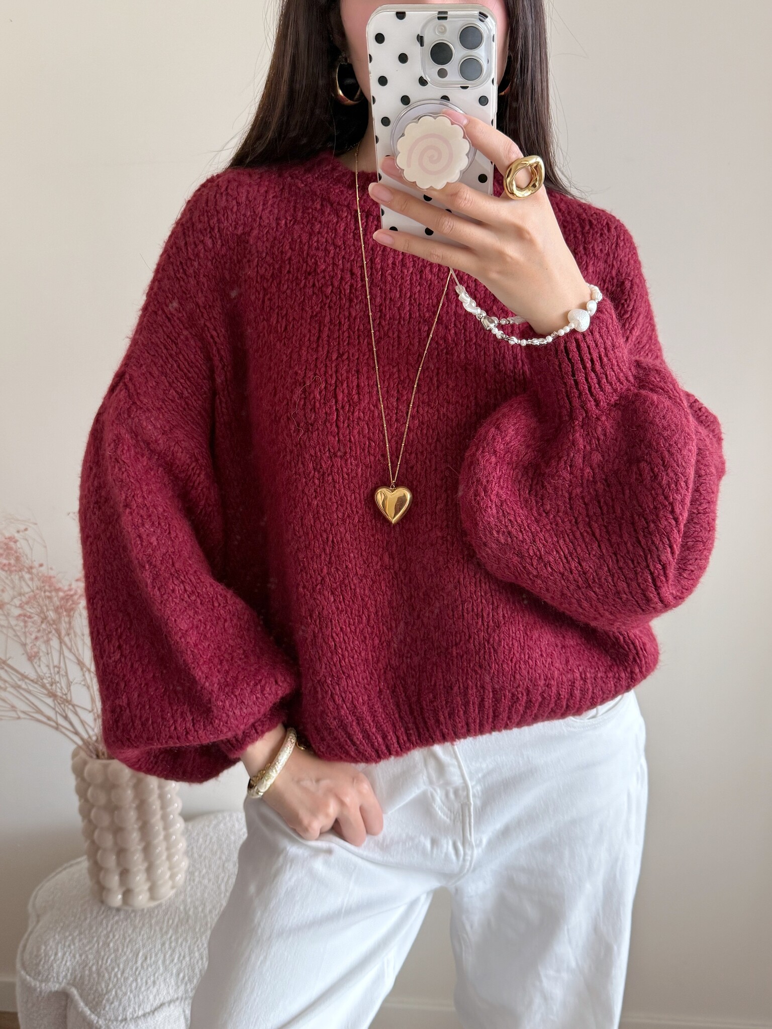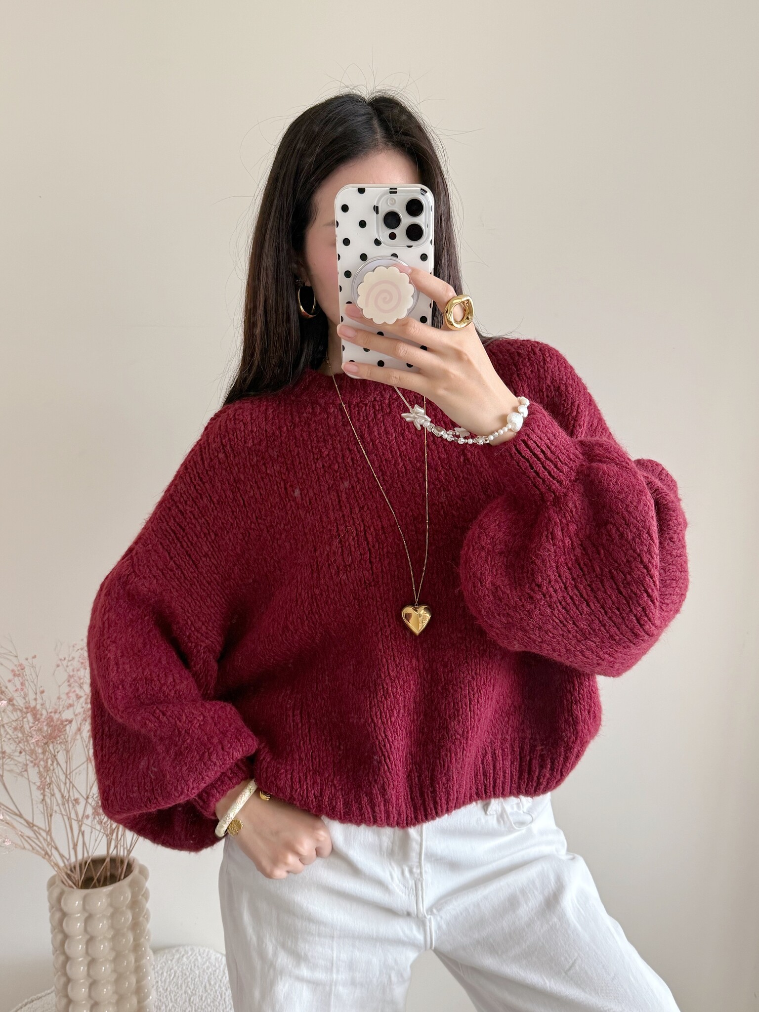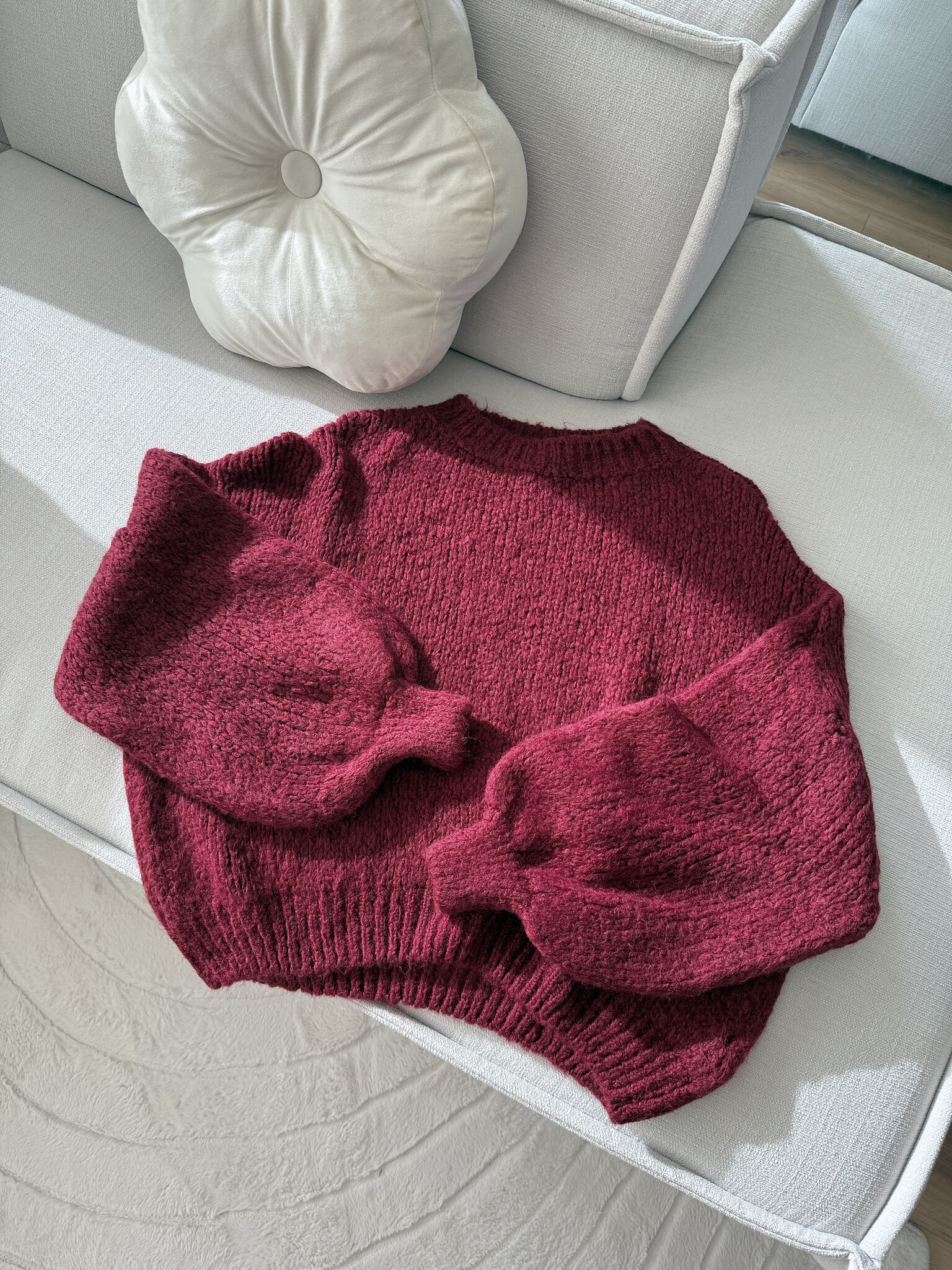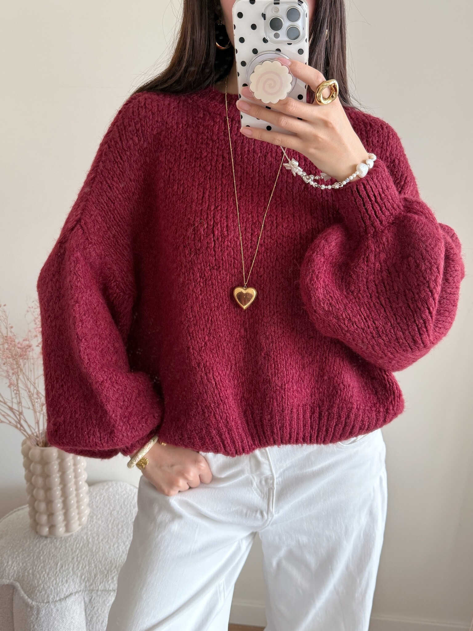 • Say hi to our newest Caro Oversized Knit Sweater! This soft knitted sweater features an oversized fit and big balloon sleeves. Pair up with one of our flared trousers for a cozy look! We have this sweater in different colors.