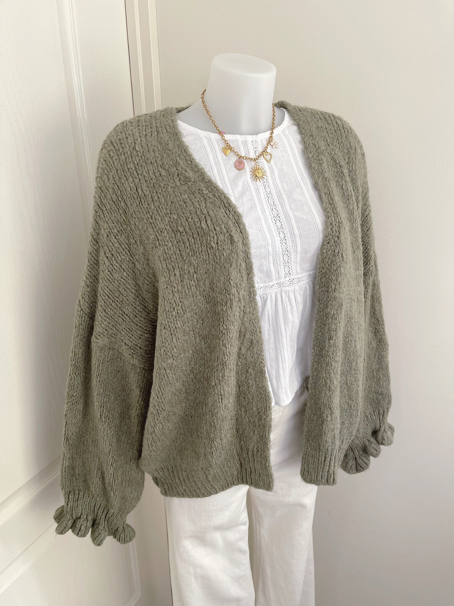 Cozy up in our Celia Ruffle Knit Cardigan!