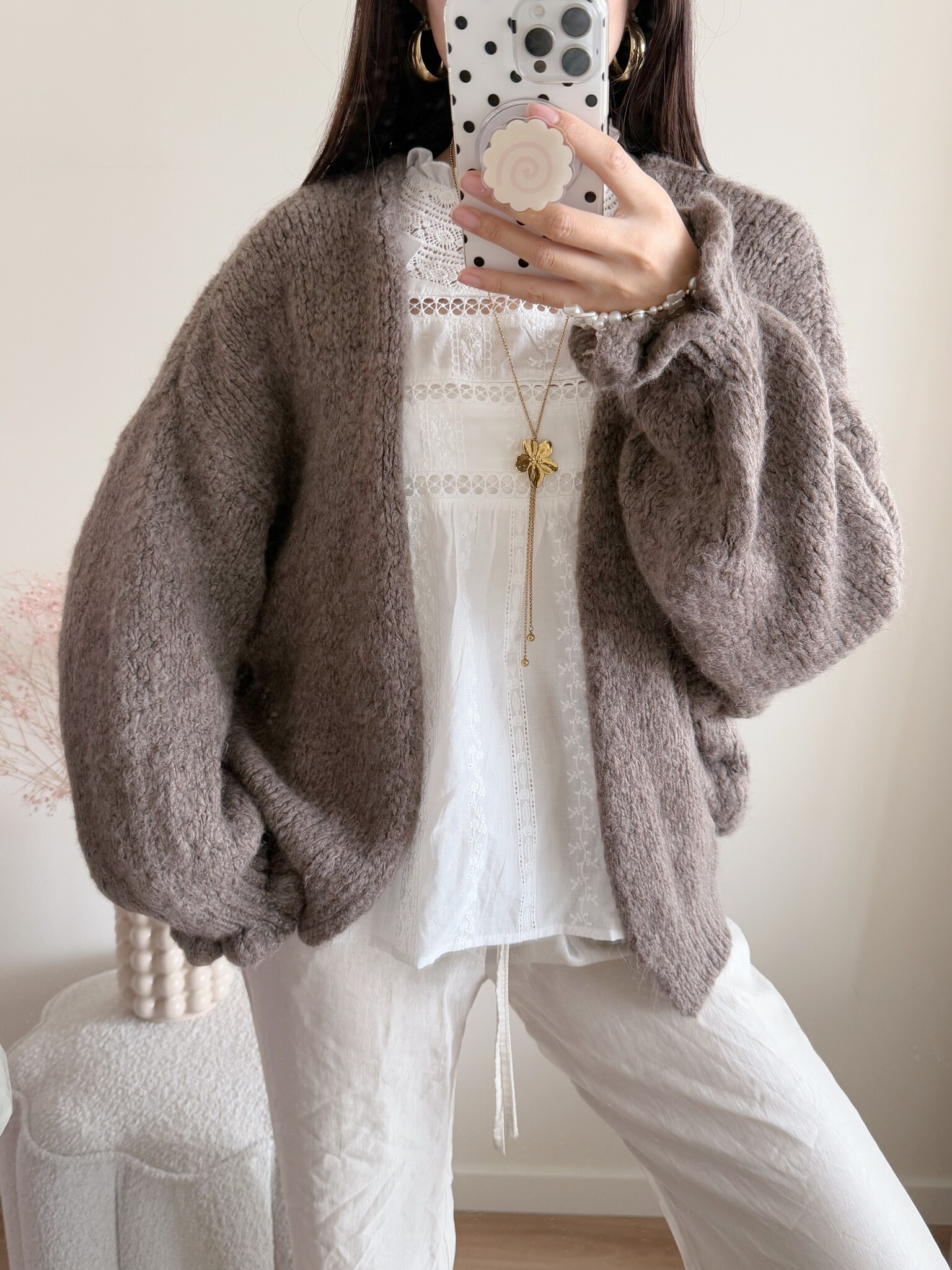 • Cozy up in our Celia Ruffle Knit Cardigan!