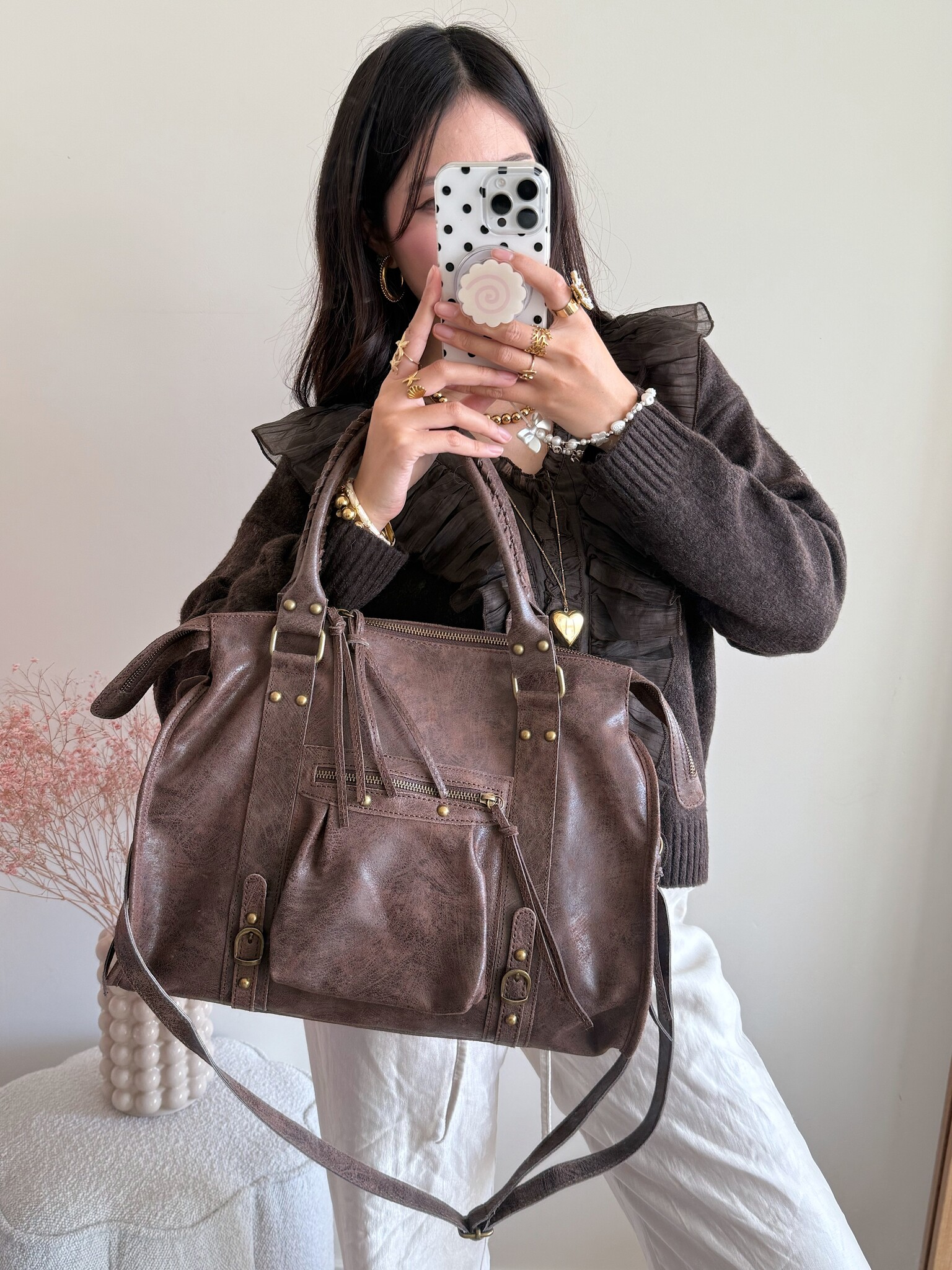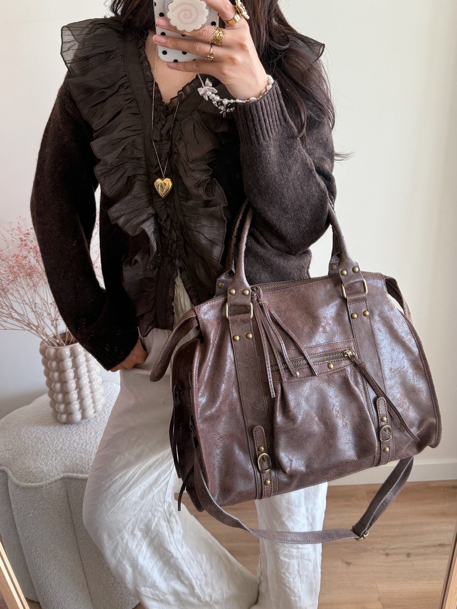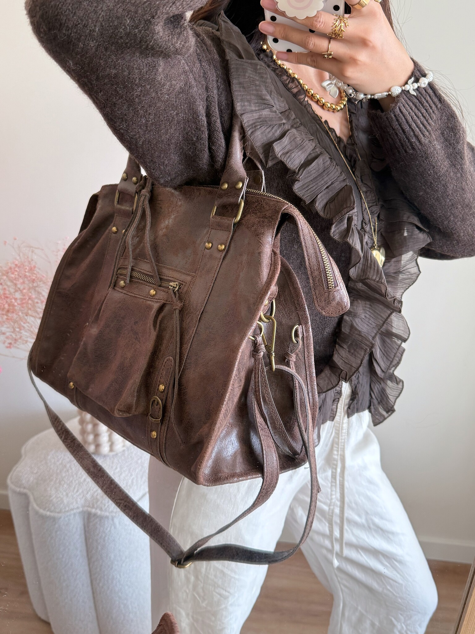 Say hello to your new schoolbag! Our Florianne City Studs Bag is made from genuine leather and features stud & tassel details. This gorgeous sturdy bag comes with a long shoulder strap so you can also wear the bag sideways. Available in different colors! We also have this bag in a smaller version, check out our Nora bags.