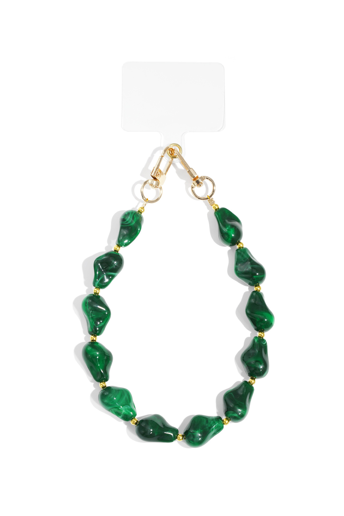 Pretty phone cord with acrylic stones and golden beads in between! Available in different colors.
