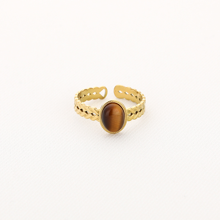 Gold Basic Natural Stone Ring / Tiger's Eye Brown