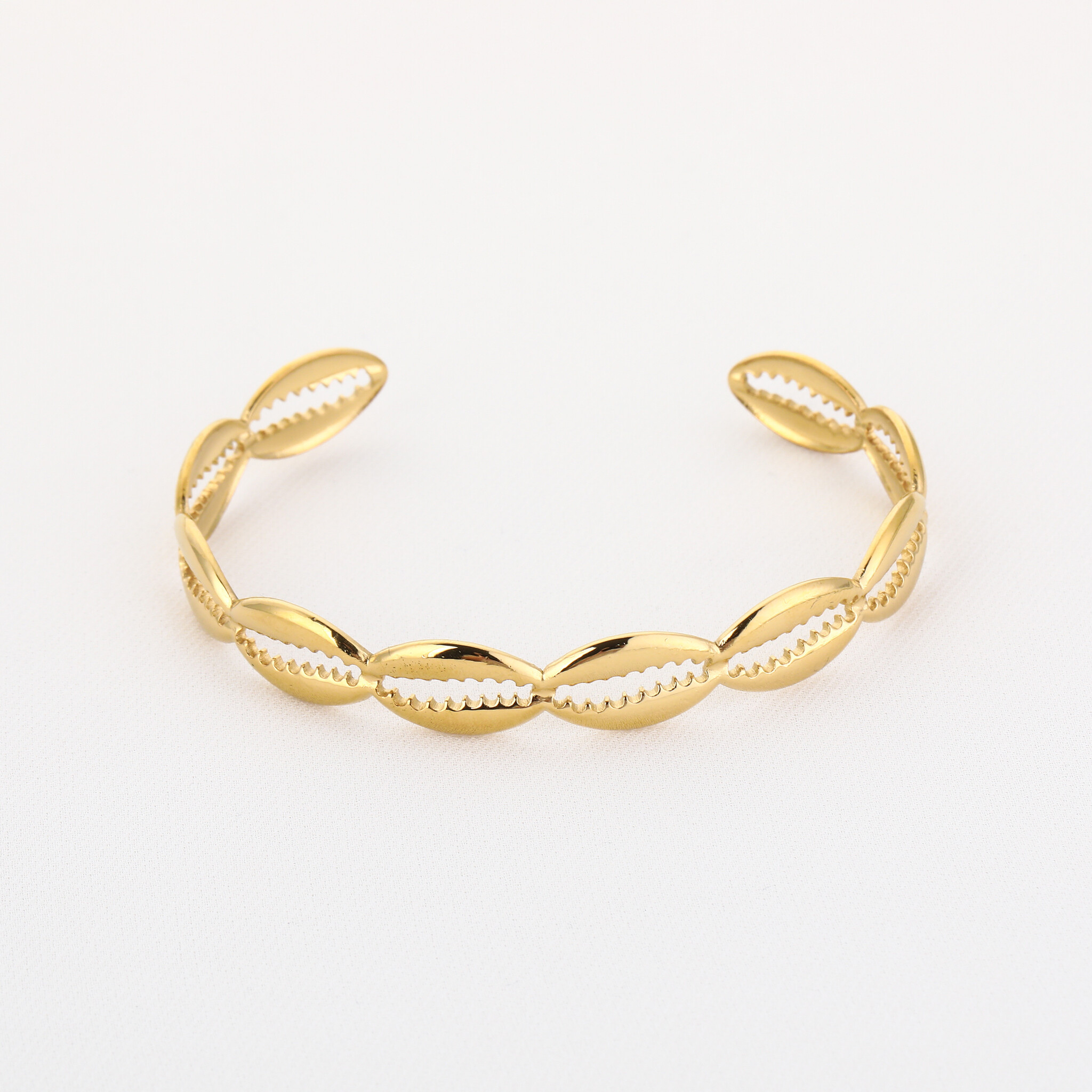 Spice up your look with this amazing bracelet! Our Gold Kauri Shell Bangle Bracelet is perfect to pair with our other bracelets.