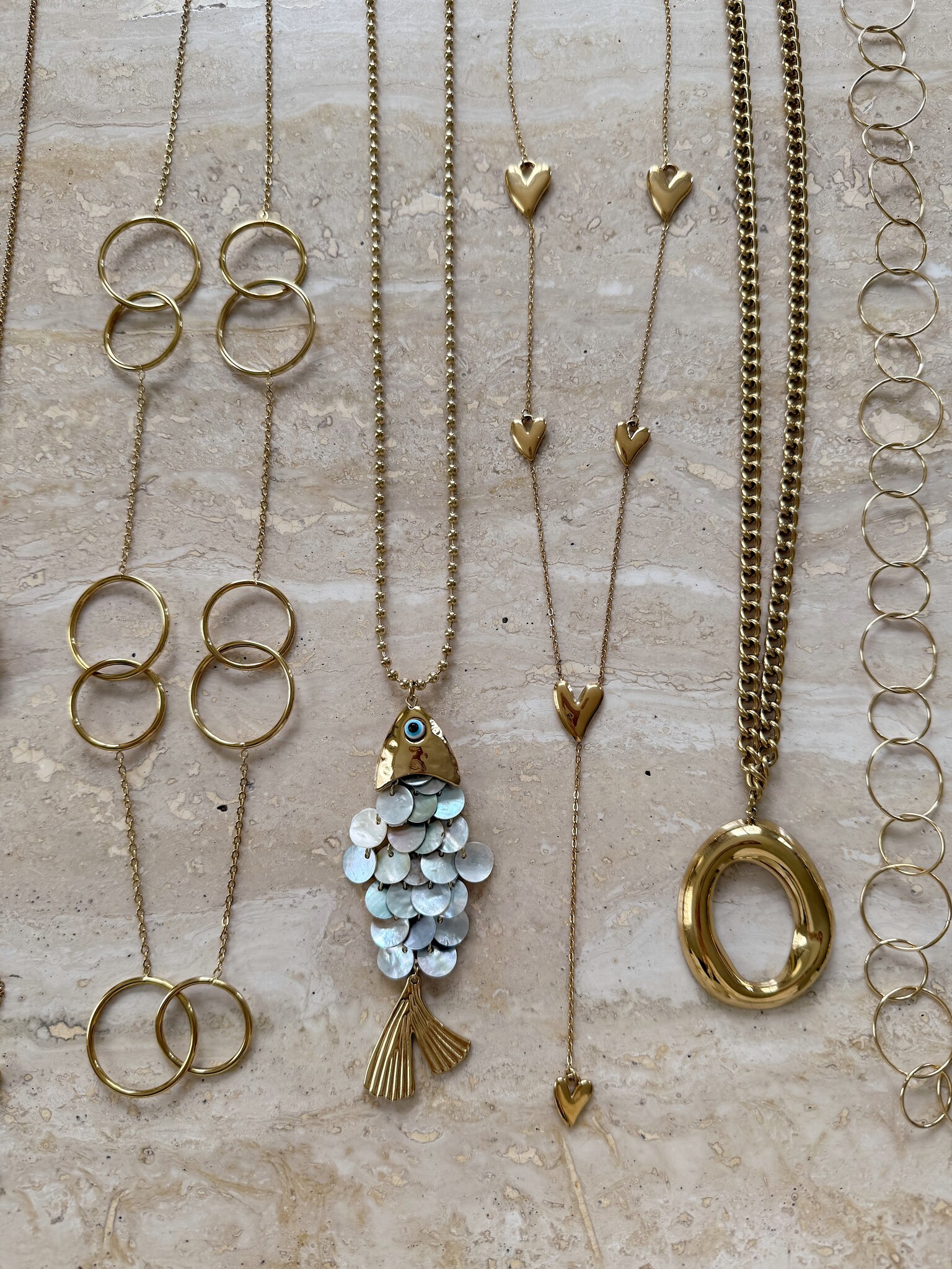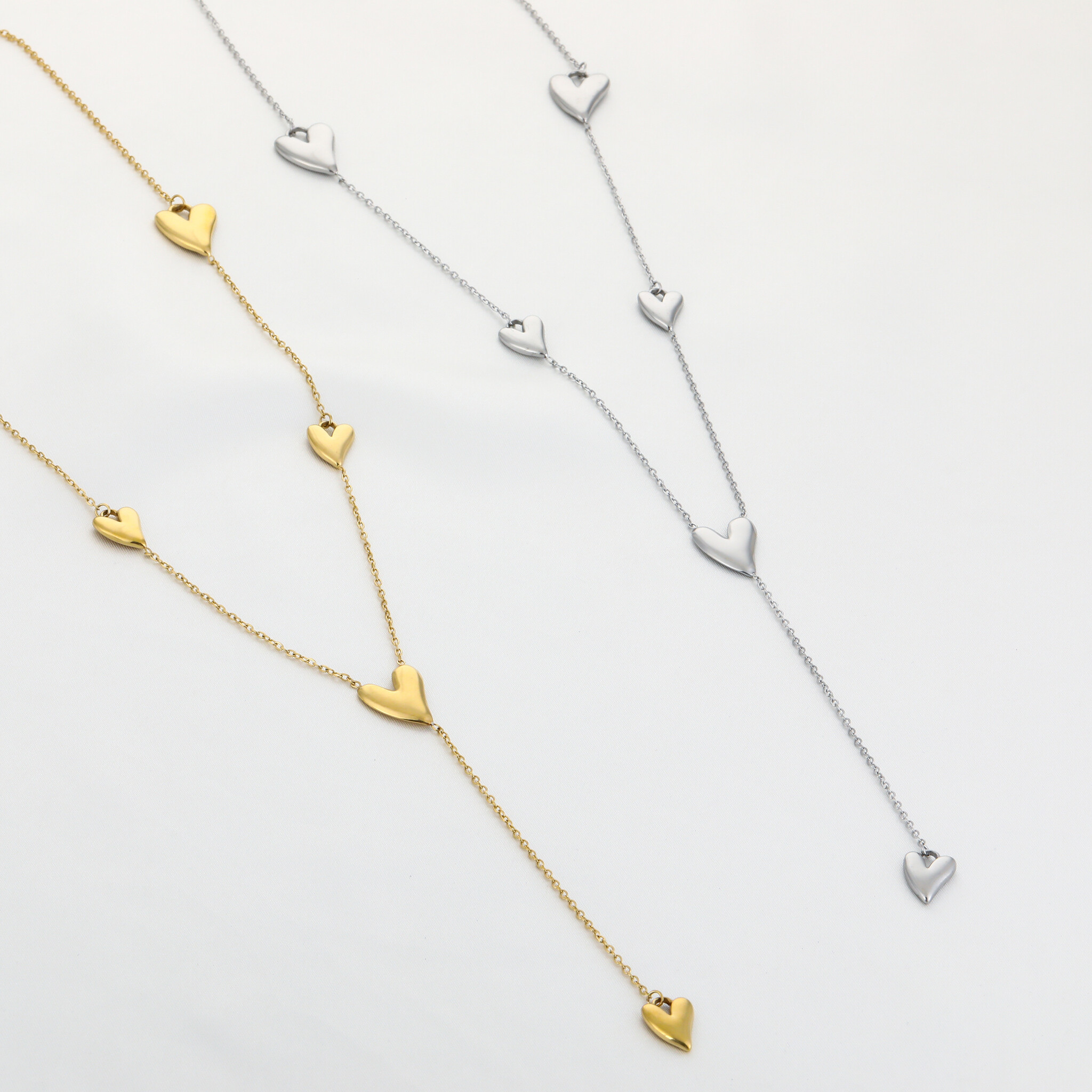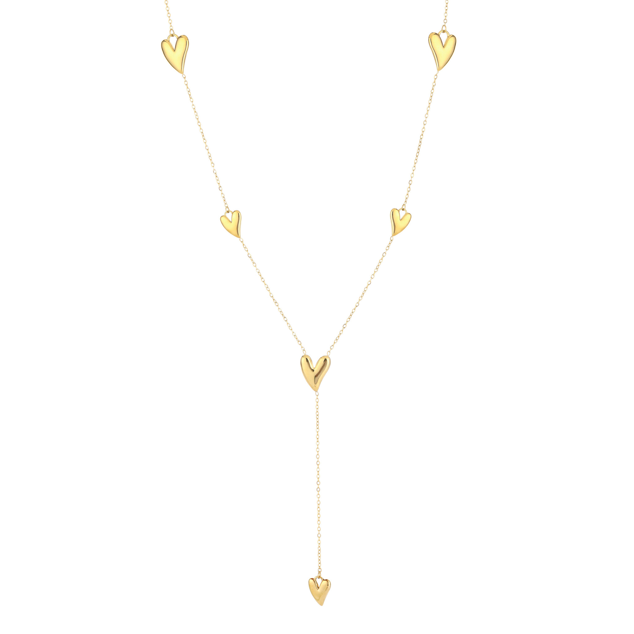 How adorable is this long necklace with heart charms! Perfect to combine with our other necklaces.