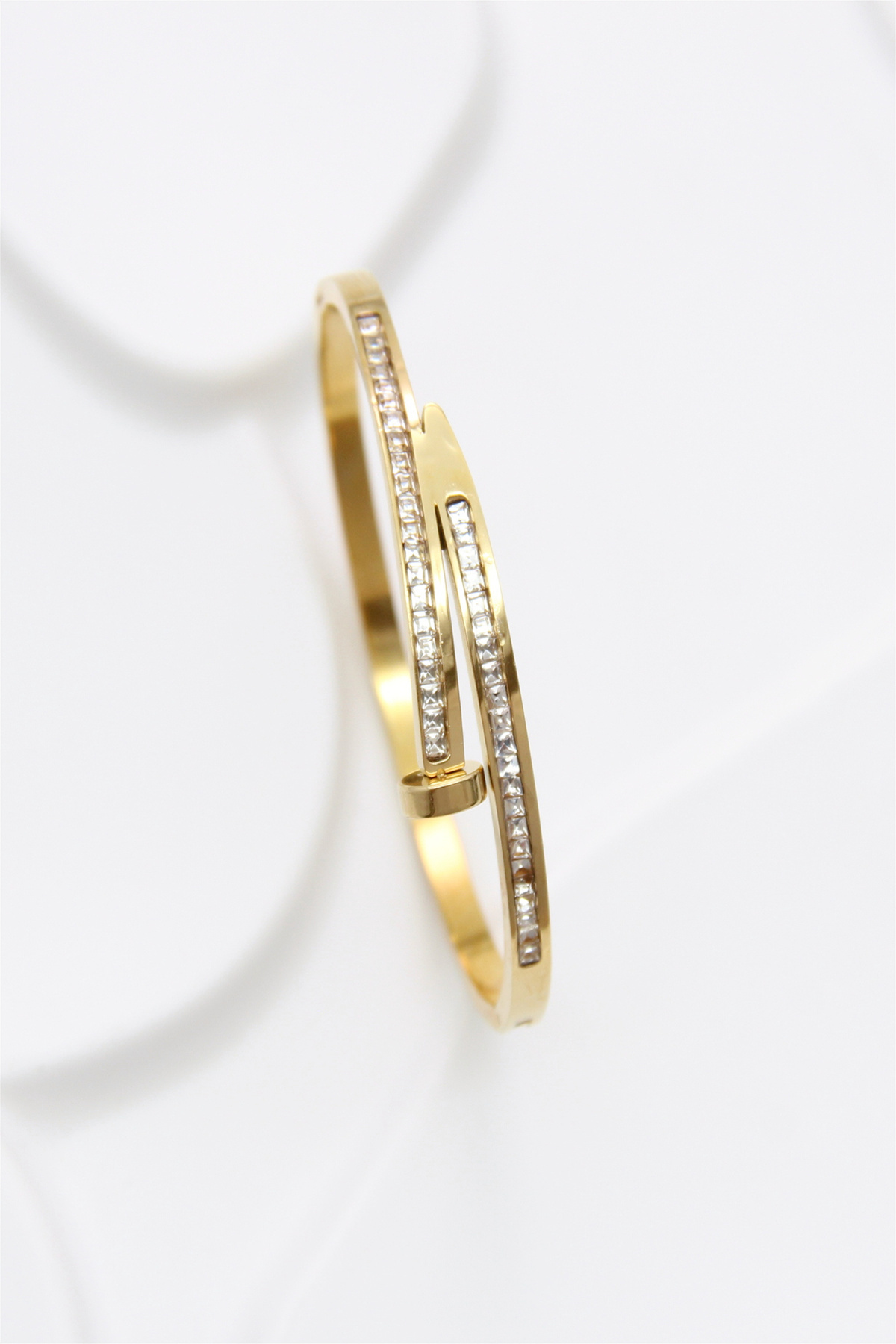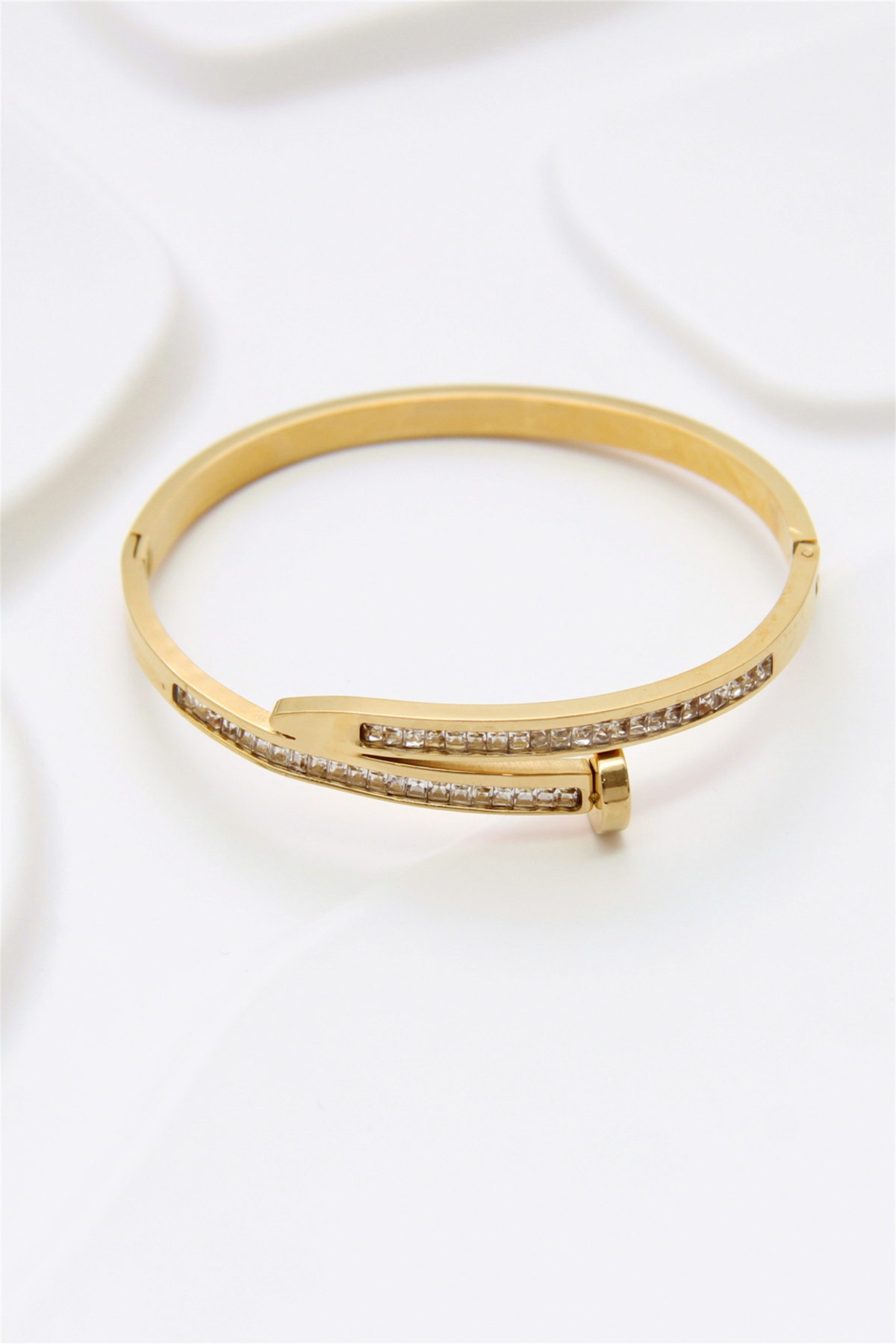 Spice up your look with this amazing bracelet! Our Gold Strass Nail Bangle Bracelet is perfect to pair with our other bracelets.