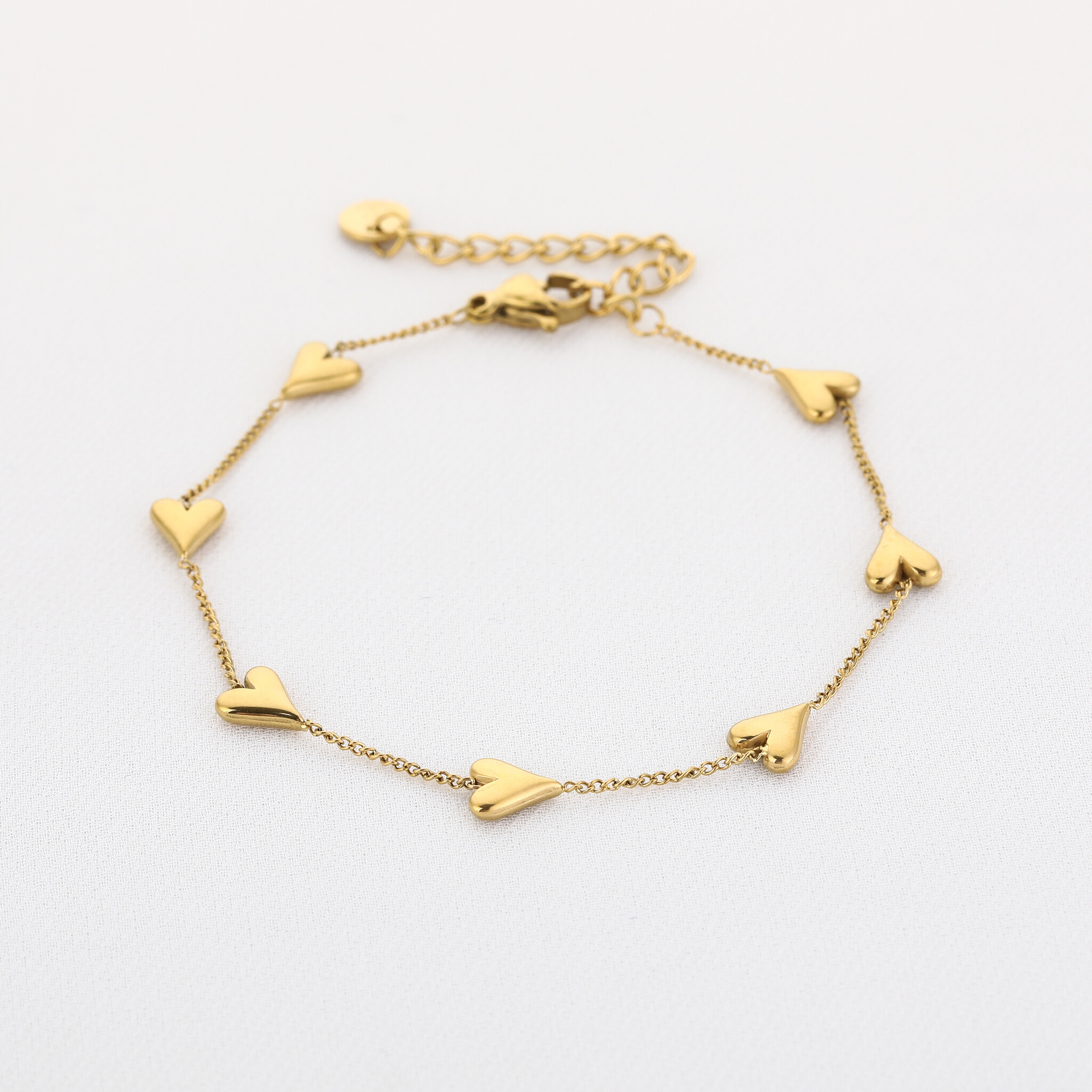 Spice up your look with this amazing bracelet! Our Gold Tiny Forever Hearts Bracelet features cute tiny heart charms and is perfect to pair with our other bracelets.