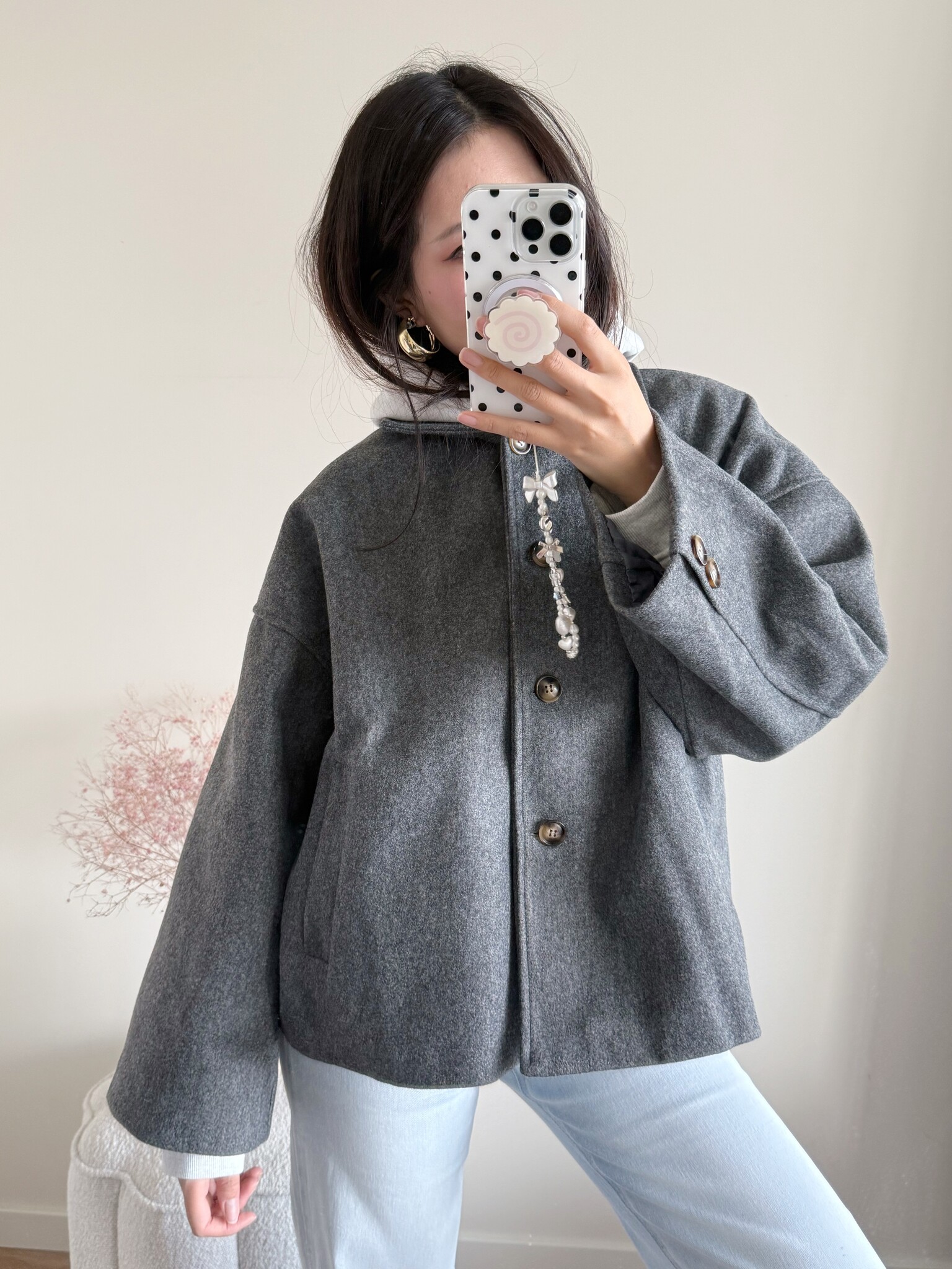 ♡ Model is normally wearing size S and wears this coat in one size. Her height is 167 cm.
