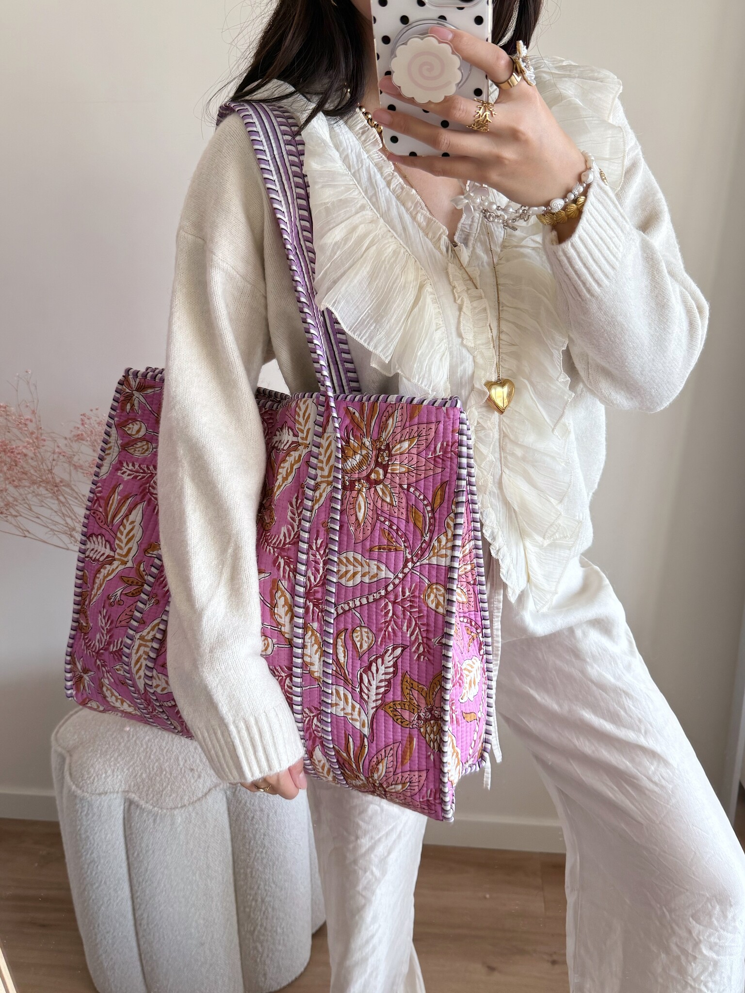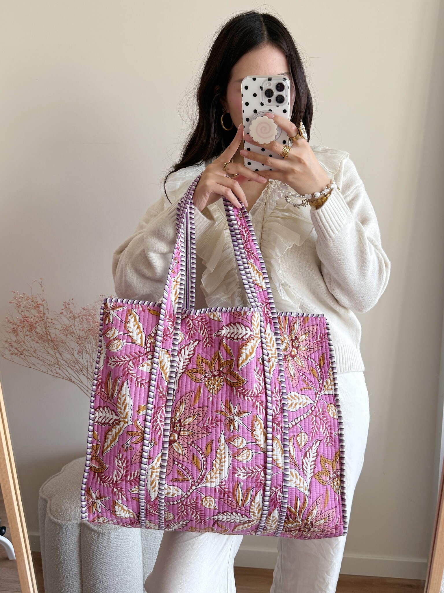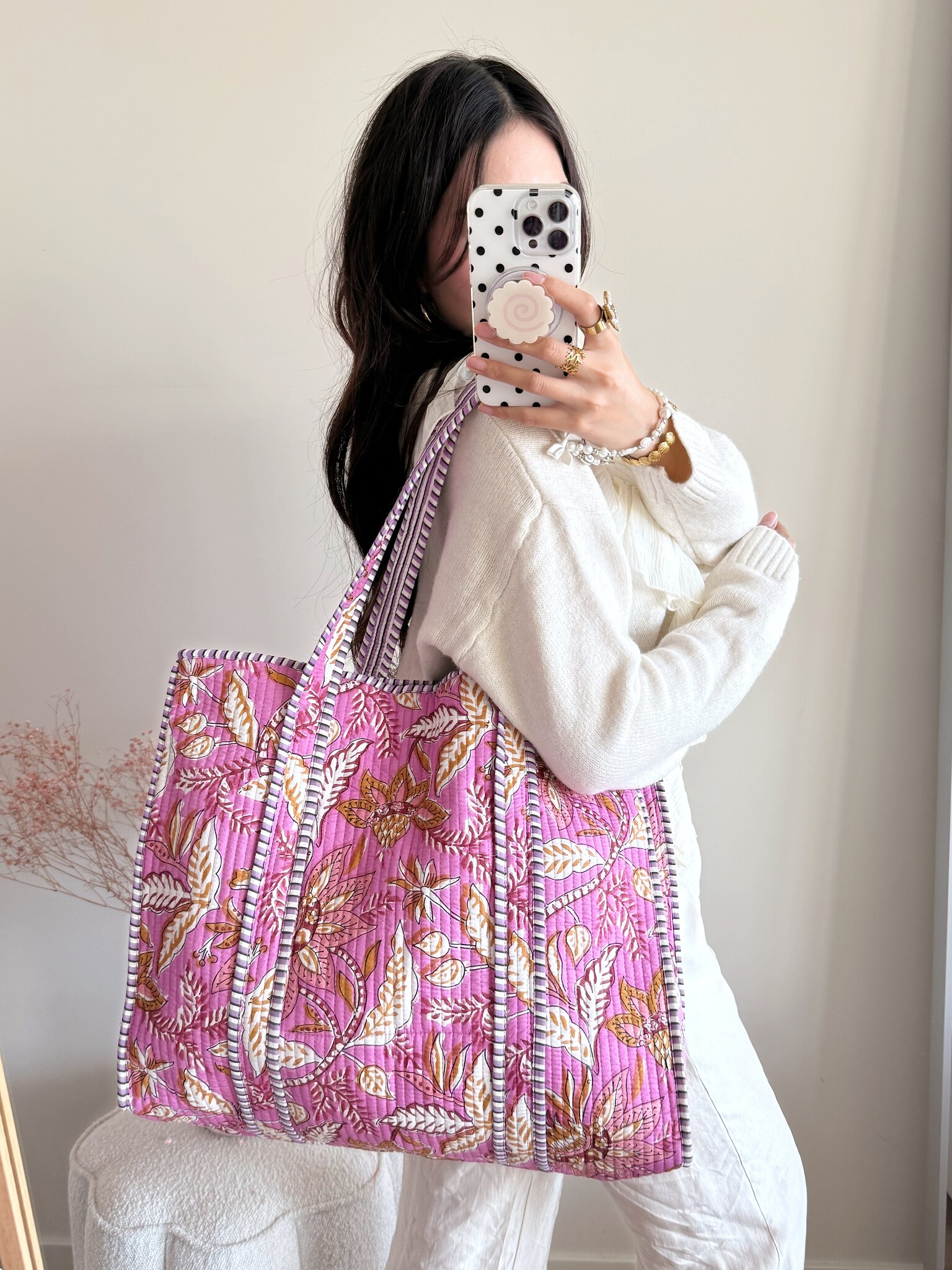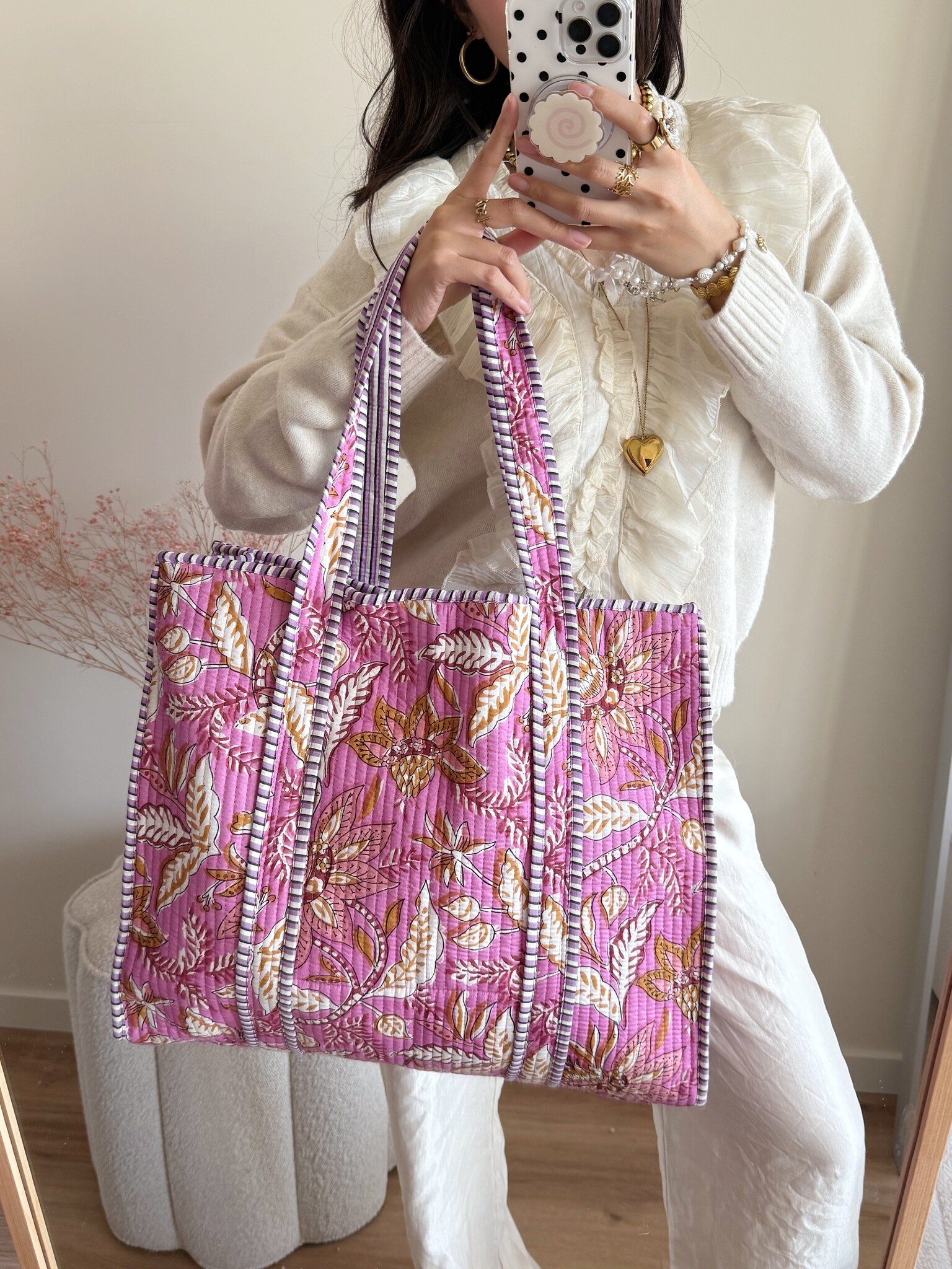 Our Macie Flower Shopper Bag has a gorgeous boho flower print and the perfect size to store your essentials! This shopper bag can be used as a weekend bag, beach bag, sport bag and even as a diaper bag. Love this one? We have this bag also in different sizes, prints and colors.