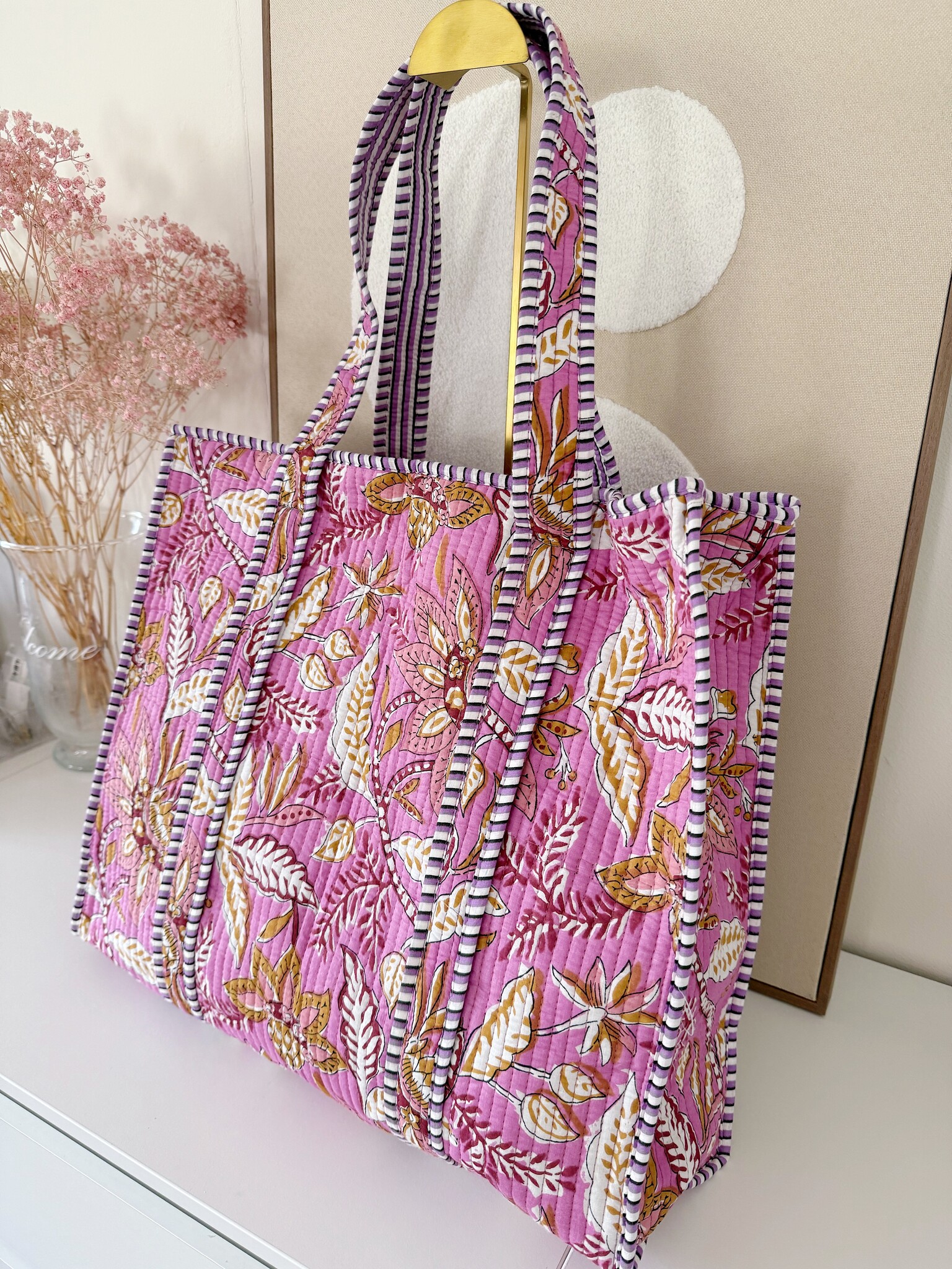 • Our Macie Flower Shopper Bag has a gorgeous boho flower print and the perfect size to store your essentials! This shopper bag can be used as a weekend bag, beach bag, sport bag and even as a diaper bag. Love this one? We have this bag also in different sizes, prints and colors.