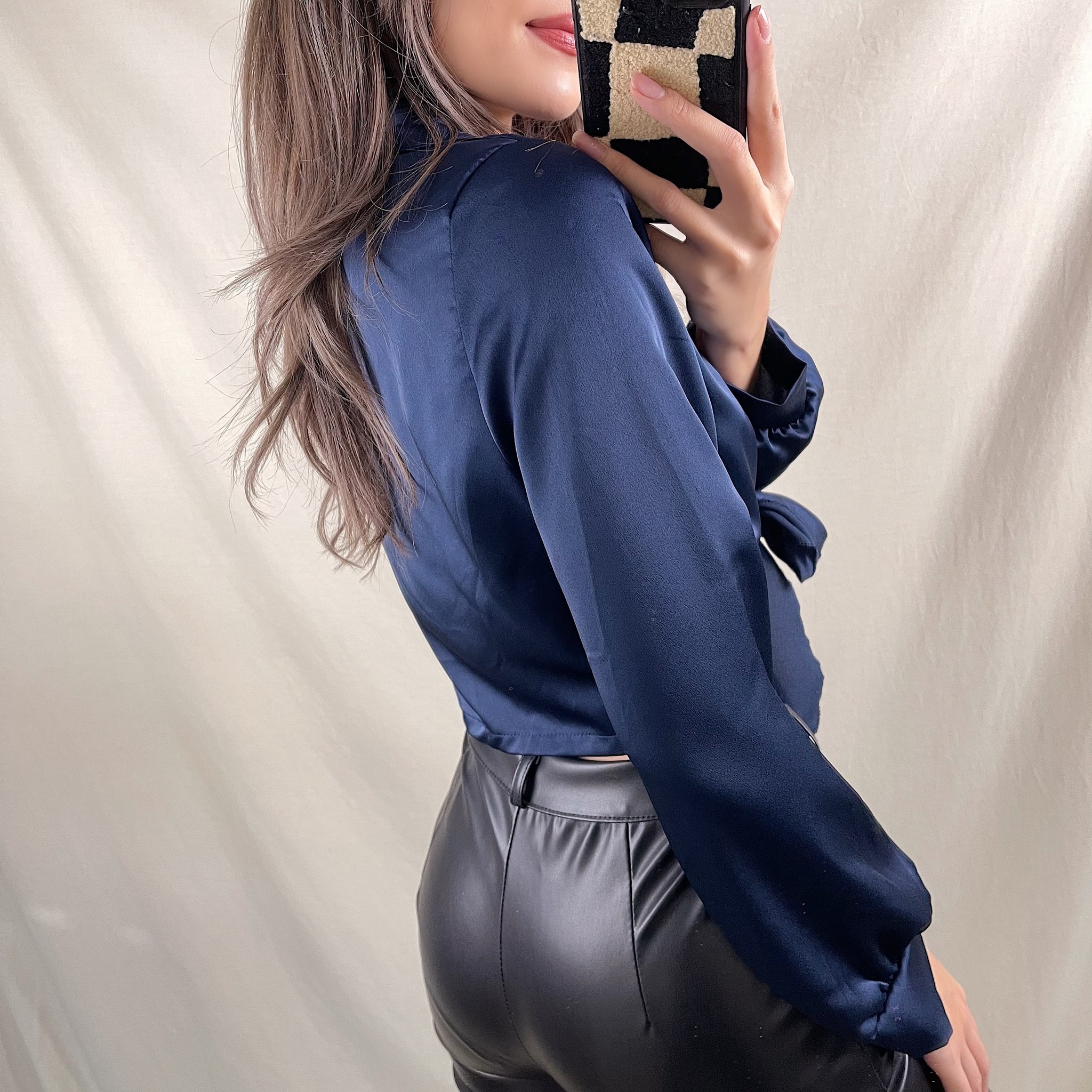 Yanis Satin Tie Top / Navy