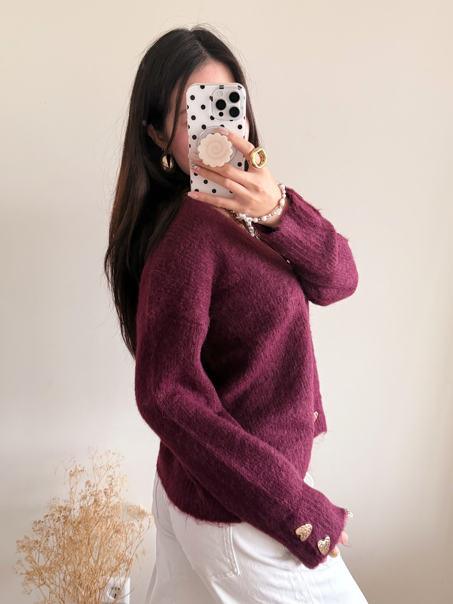 Say hello to our Amanda Heart Buttons Cardigan! Deze zachte vest heeft mooie hartvormige gouden knopen.