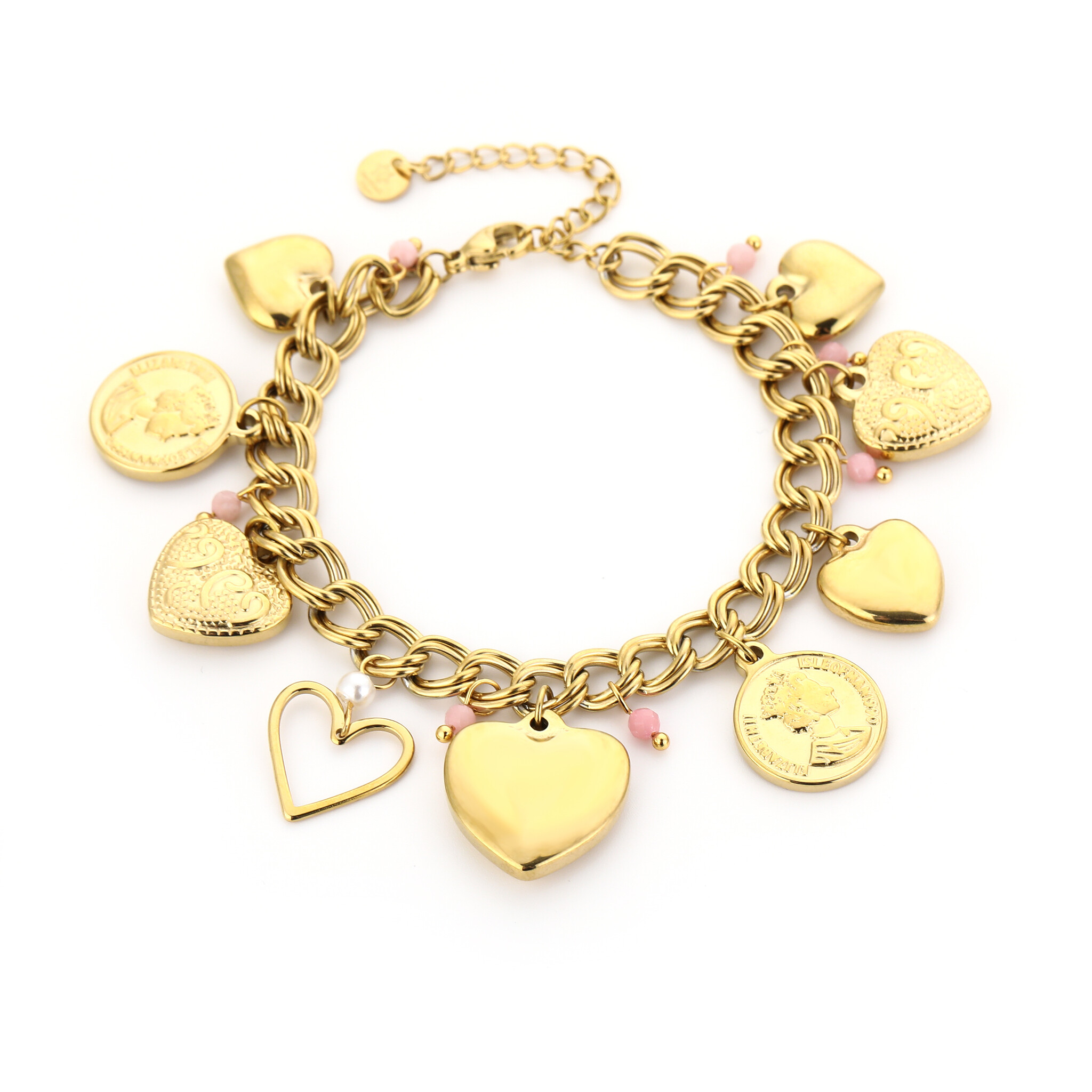 • Cute stainless steel armbandje met hart en munt bedeltjes!