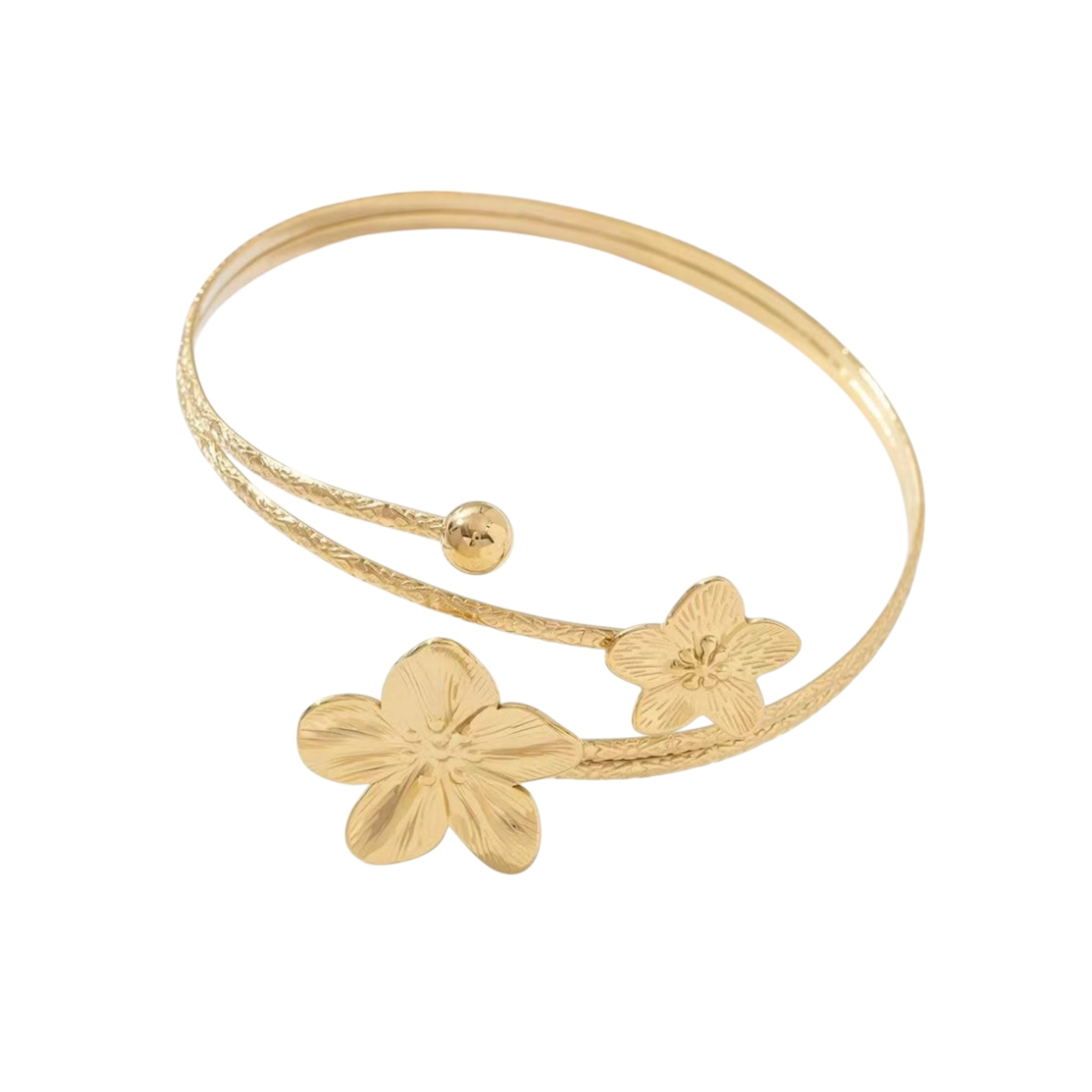 Spice up your look met deze te leuke armband! Onze Gold Double Flower Above Bracelet kun je dragen om je bovenarm en is heel goed te combineren met onze andere armbandjes.