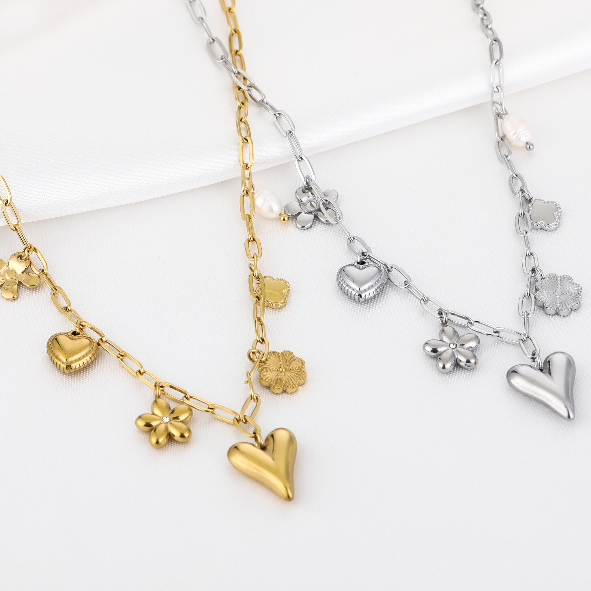 Prachtig kettinkje met hart en bloem bedeltjes! Super mooi te combineren is met onze andere kettingen.