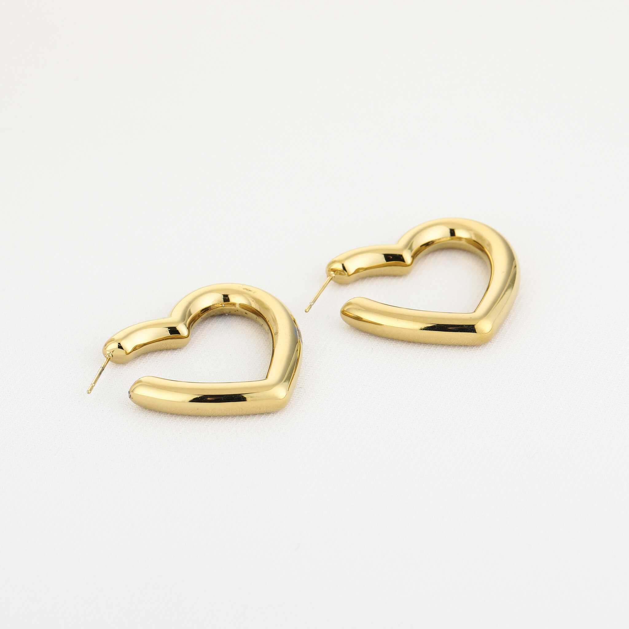 Onze Gold Small Bold Heart Hoop Earrings heeft een hartvormig design! Maak je look compleet en combineer de hoops met een van onze andere oorringen.