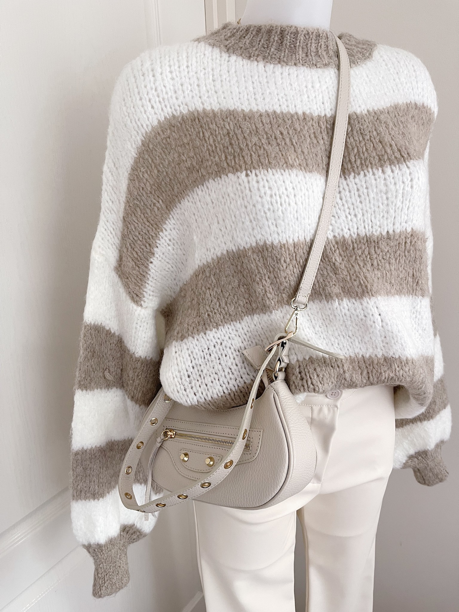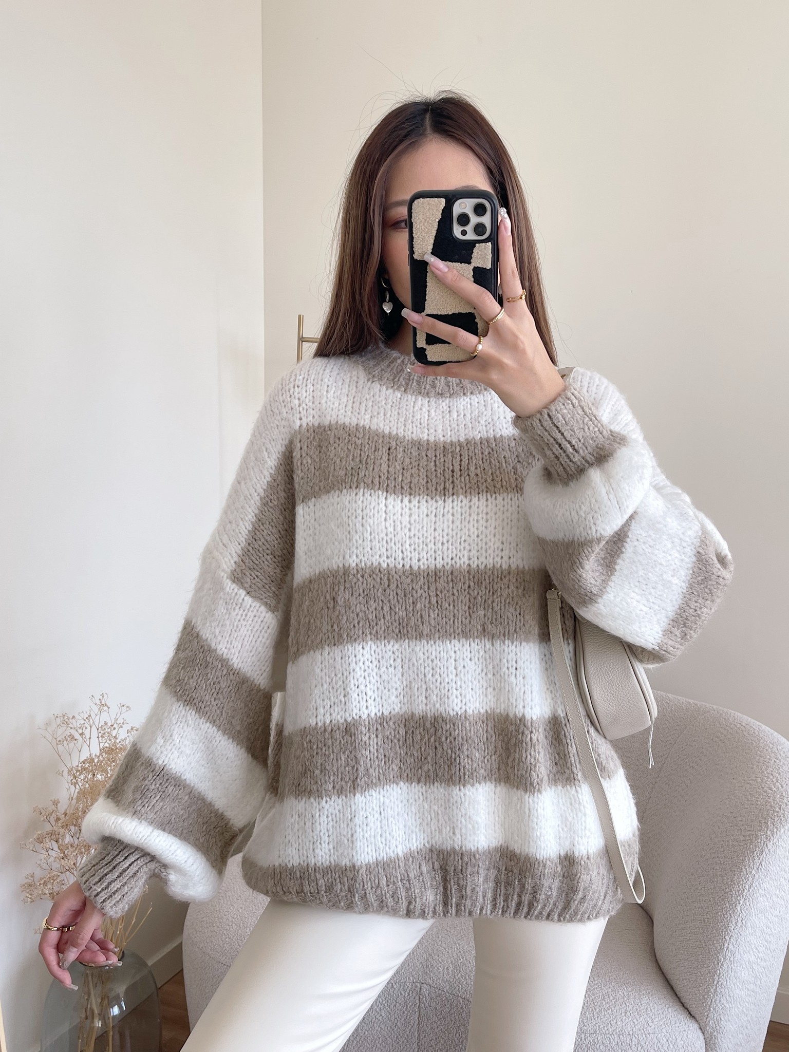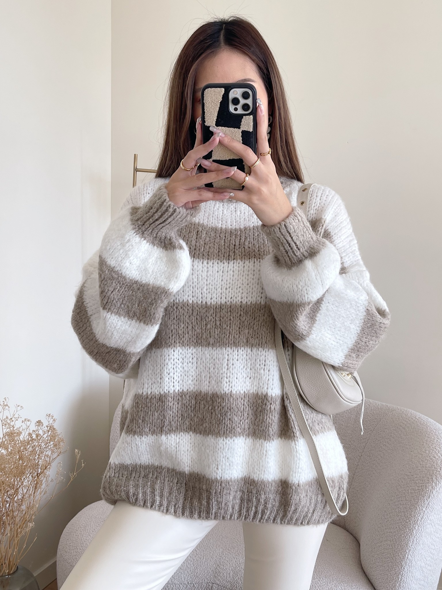 You need this Juna Oversized Striped Sweater! Deze grote trui heeft een oversized fit, gekleurde strepen en lange mouwen. Verkrijgbaar in verschillende kleuren!
