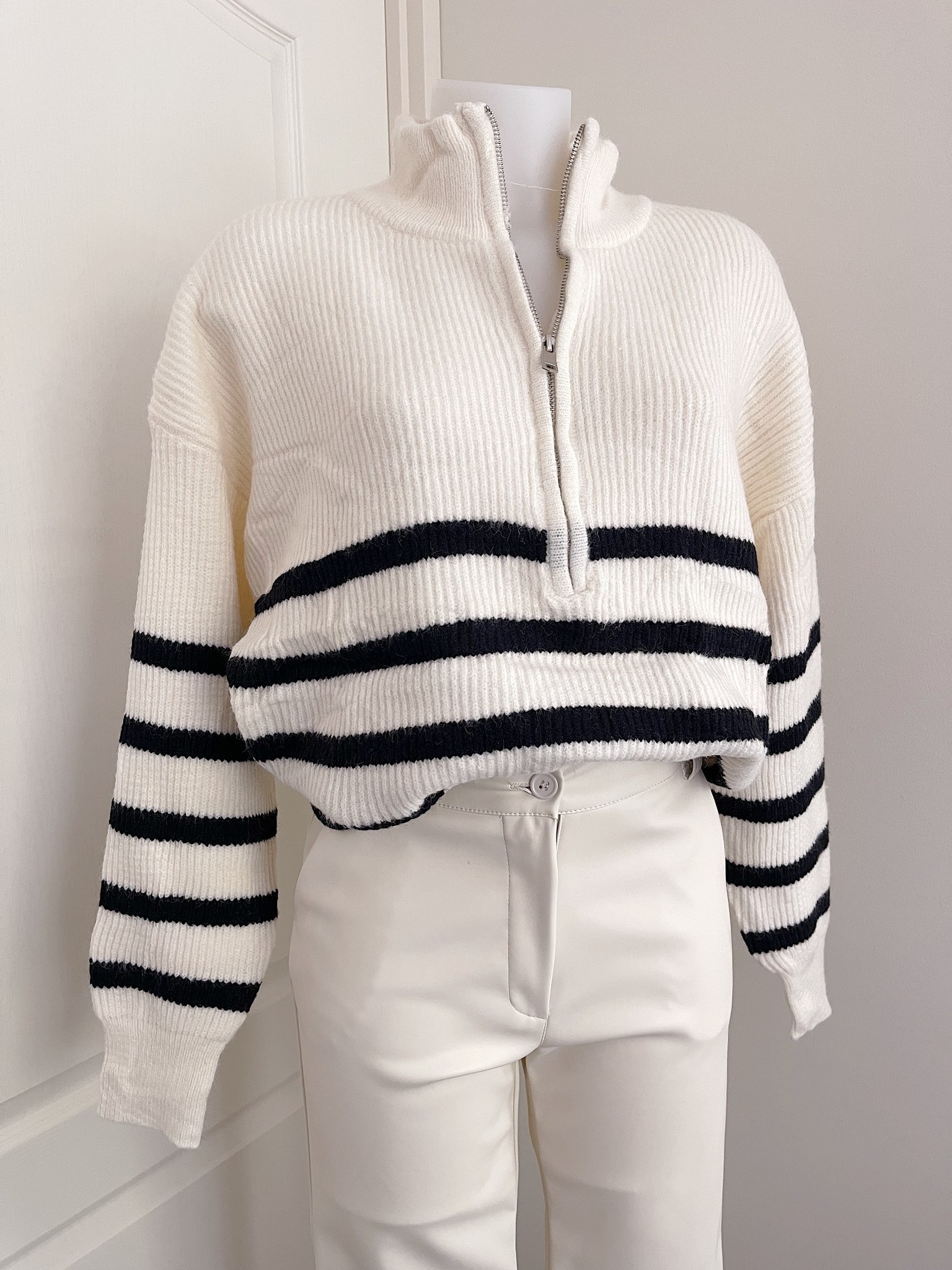 Say hello to our Loreli Striped Zip Sweater! Deze comfy sweater heeft een ritsje aan de bovenkant.