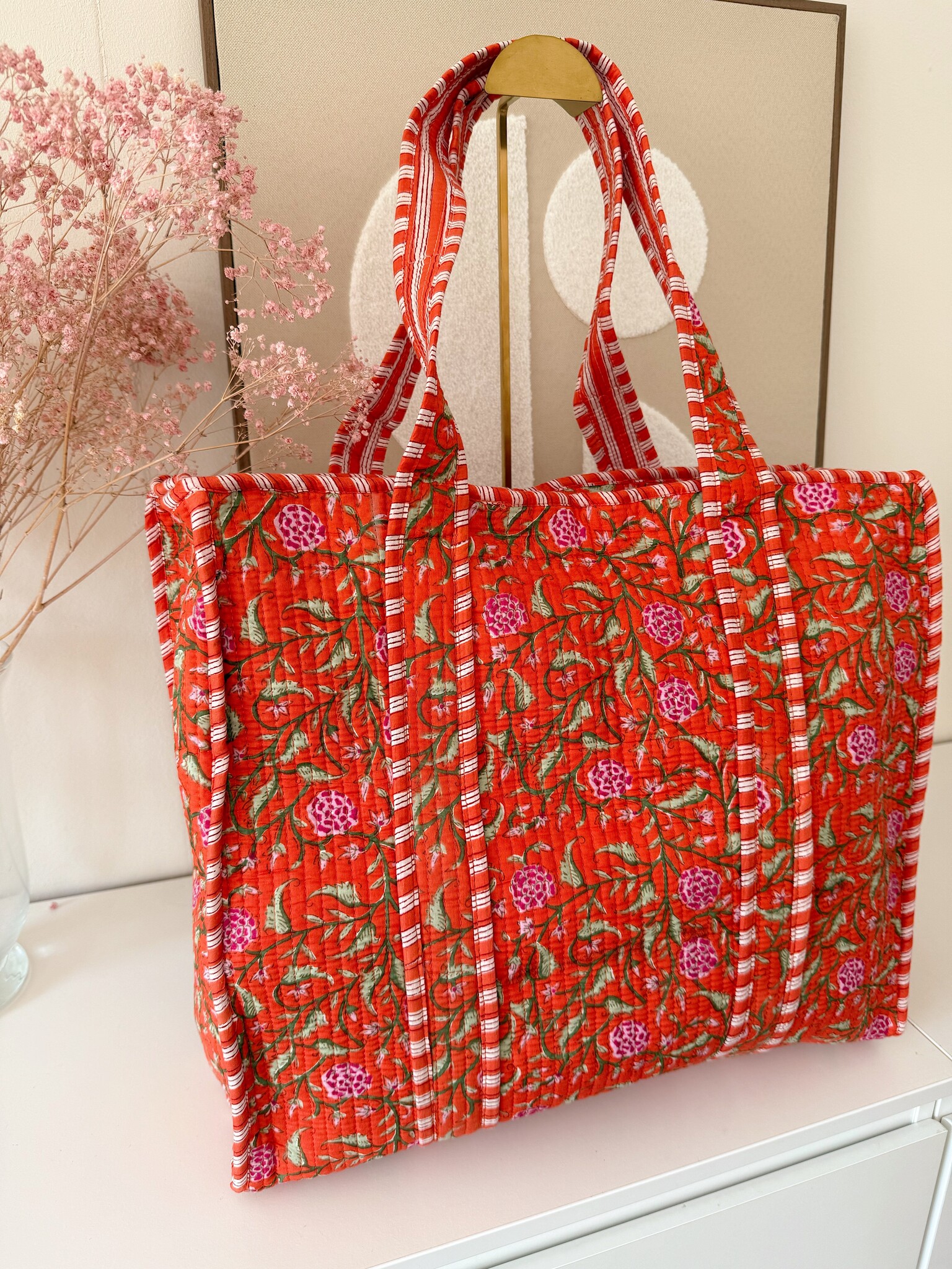 Onze Macie Flower Shopper Bag heeft een prachtige boho bloemenprint en het perfecte formaat om je essentials te bewaren! Deze shopper tas is super leuk om te dragen als weekend tas, strandtas, sporttas en/of luiertas. Love this one? We hebben de tas in verschillende maten, prints en kleuren.