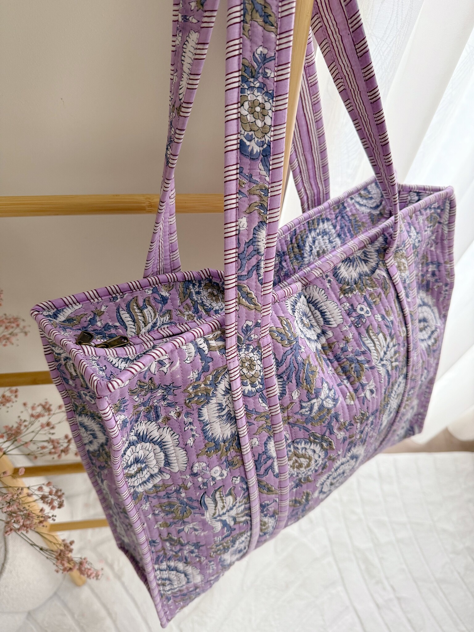 Onze Macie Flower Shopper Bag heeft een prachtige boho bloemenprint en het perfecte formaat om je essentials te bewaren! Deze shopper tas is super leuk om te dragen als weekend tas, strandtas, sporttas en/of luiertas. Love this one? We hebben de tas in verschillende maten, prints en kleuren.