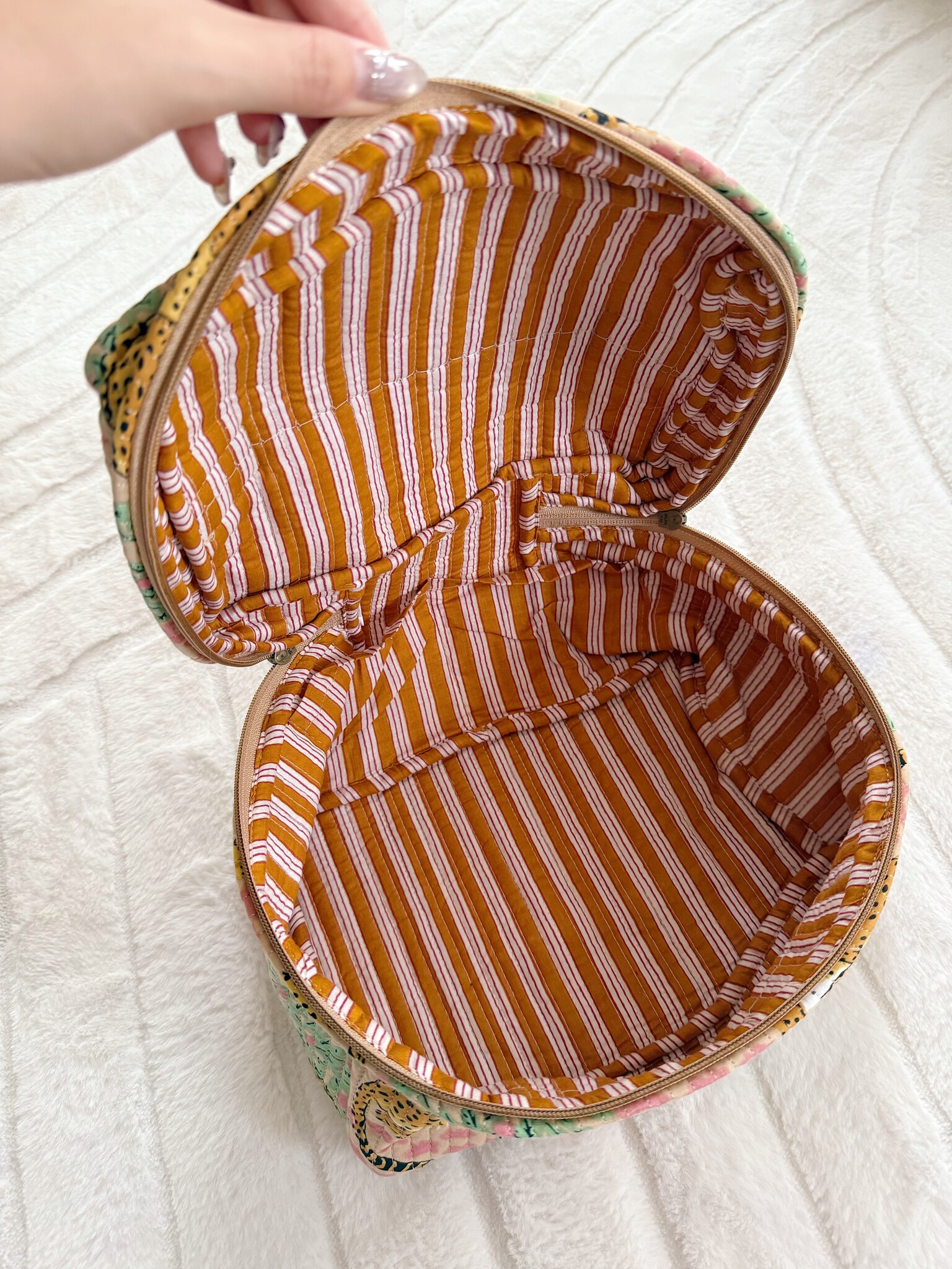 Een cute toilettas met mooie bloemenprint! Perfecte formaat om je make-up en toilet artikelen in te bewaren zoals droogshampoo, haarspray, setting spray etc.
