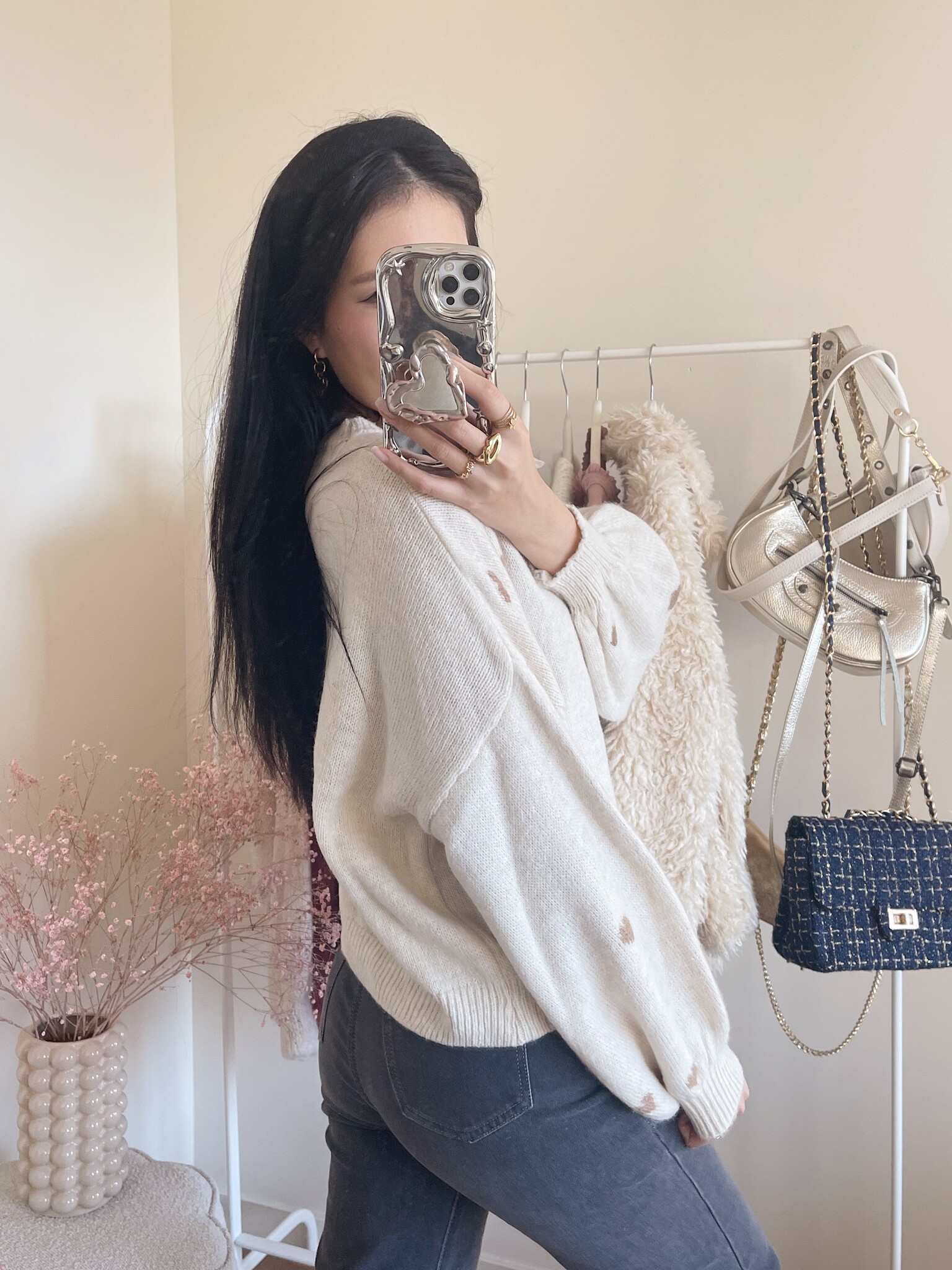 • This cute sweater screams spring! Onze Solina Heart Knit Sweater heeft leuke hartjes aan de voorkant. Combineer de zachte trui met een wijde pantalon of straight leg jeans!