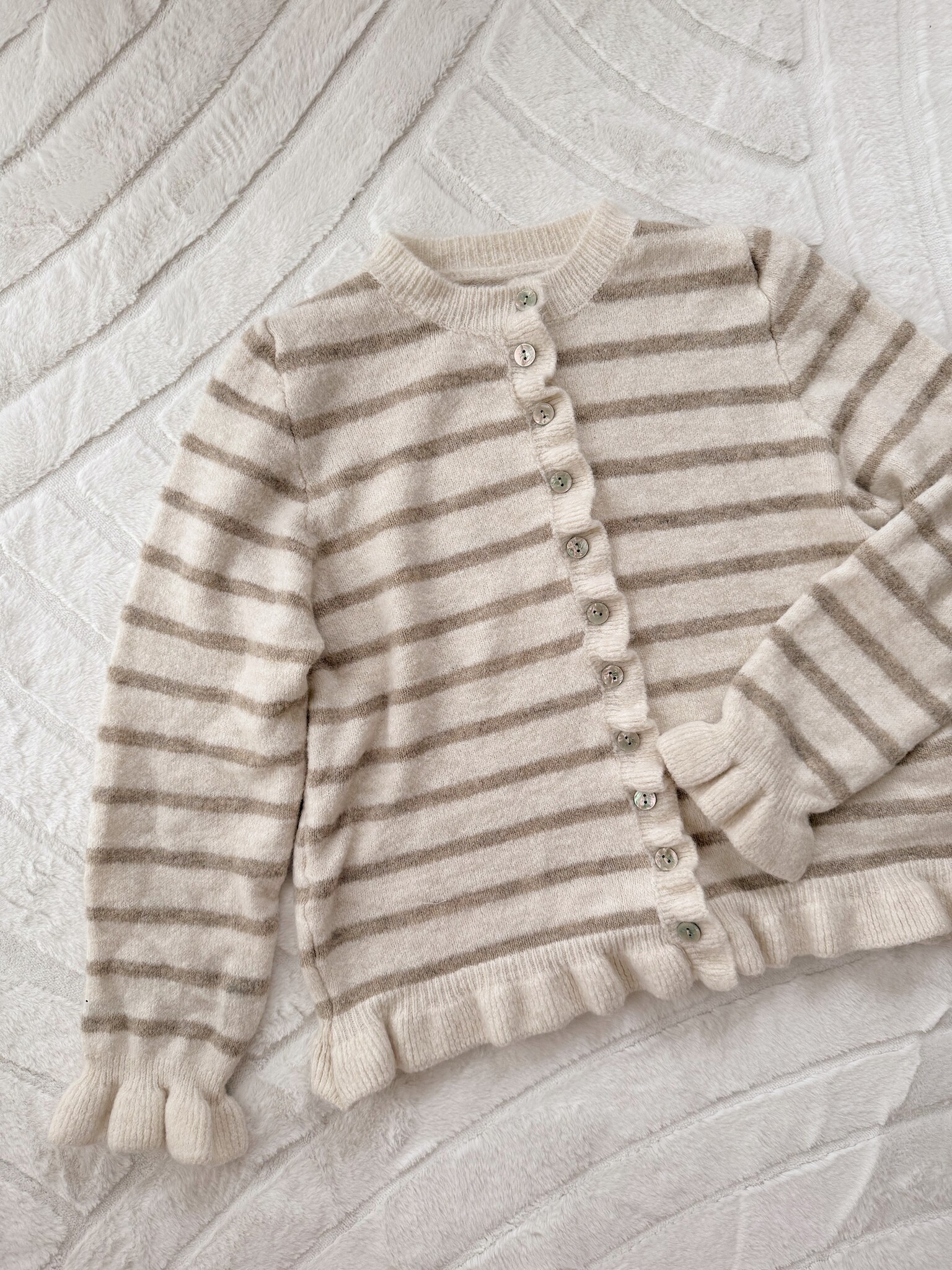 • Cozy up in our Svea Striped Ruffle Cardigan!